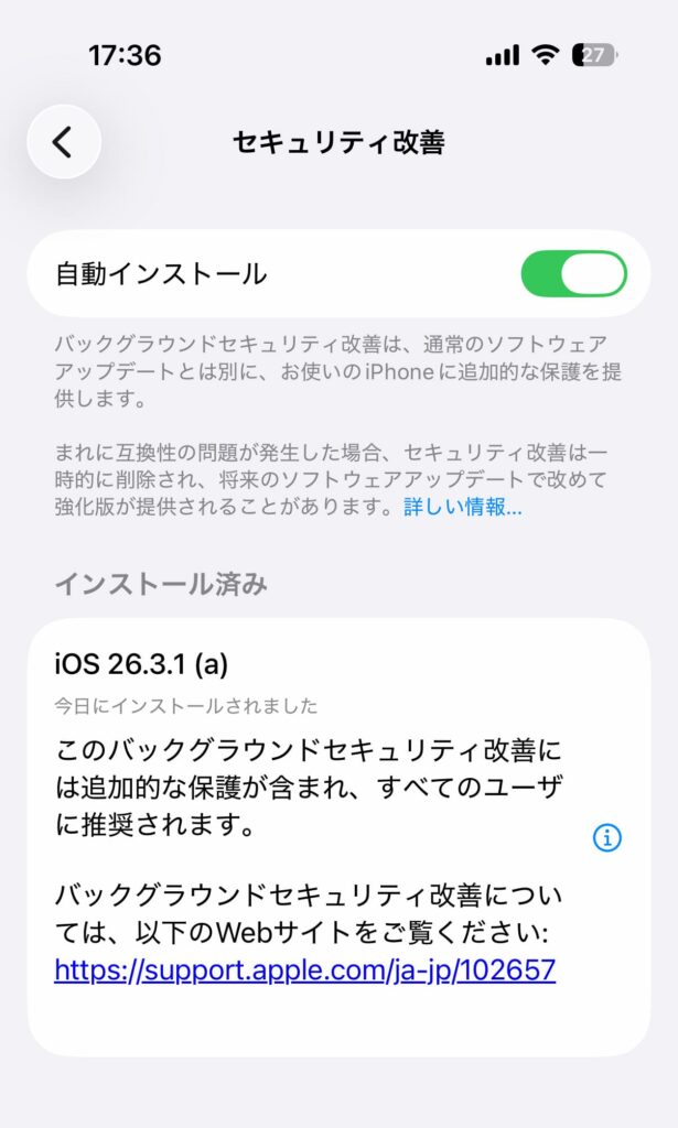 凭借对 DarkSword 的支持,苹果首次公开运营其新的补丁分发机制。那是 ”后台安全改进“是。