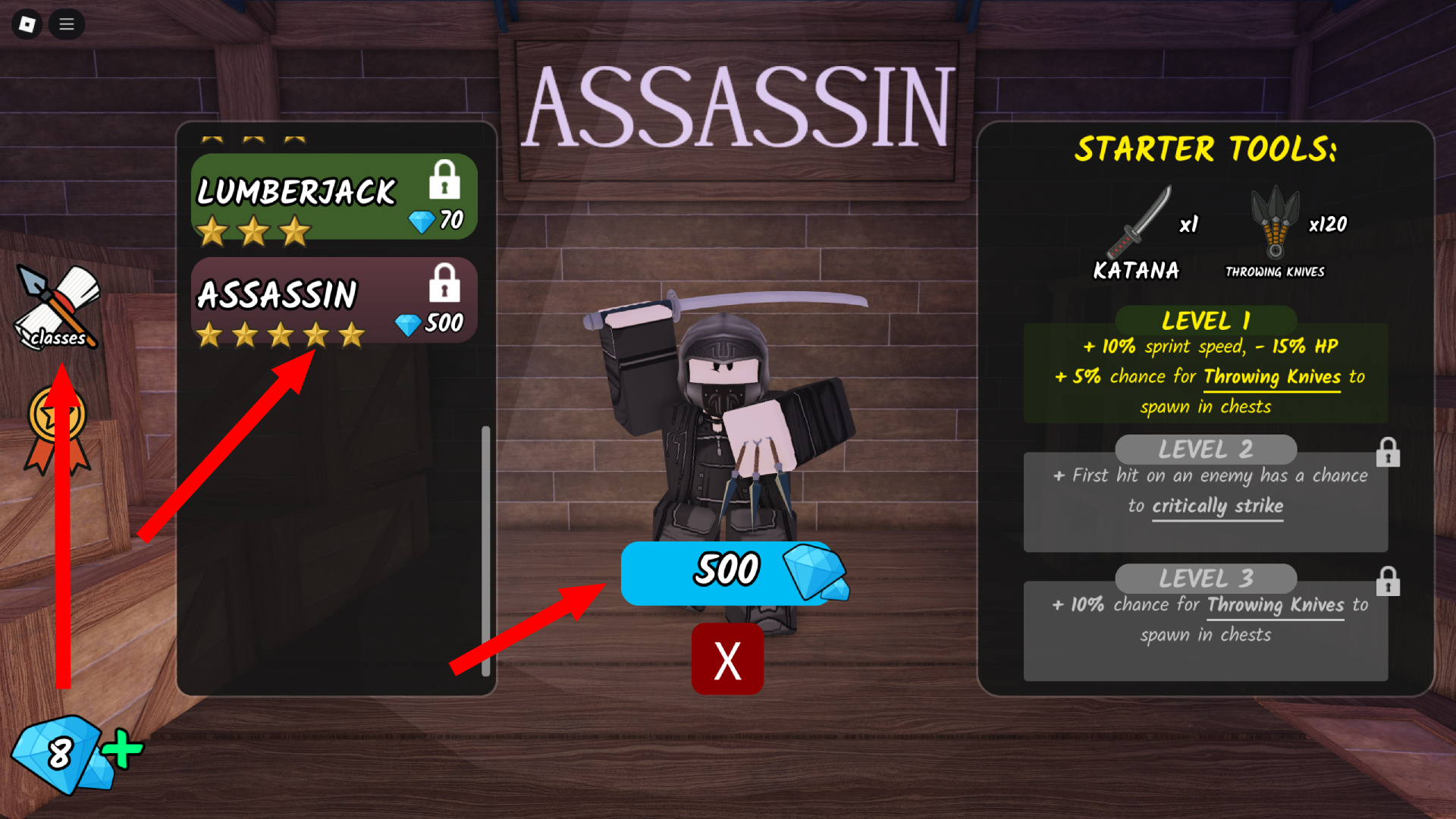 - 刺客职业是《森林九十九夜》中最好的职业之一。它也是最昂贵的,花费 500 钻石。