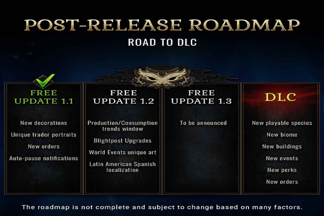 当然,《对抗风暴》路线图让玩家对即将发生的事情有了一些初步的了解。例如,免费更新。一些更新包括更独特的艺术,甚至更多的语言。然而,也许路线图中最令人兴奋的方面是 DLC。重要的是,游戏开发商承诺推出新的 DLC。有趣的是,下一个扩展包将包含新的可玩物种、新的生物群落、建筑物等等。查看下面的路线图。