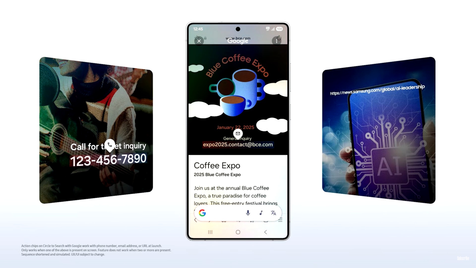 Galaxy AI 的 Circle to Search 功能可识别图像或视频中的电子邮件、电话号码和 URL。此外,它还可以帮助您通过仅使用圆圈动作和导航功能来发送电子邮件、呼叫某人以及打开网站。