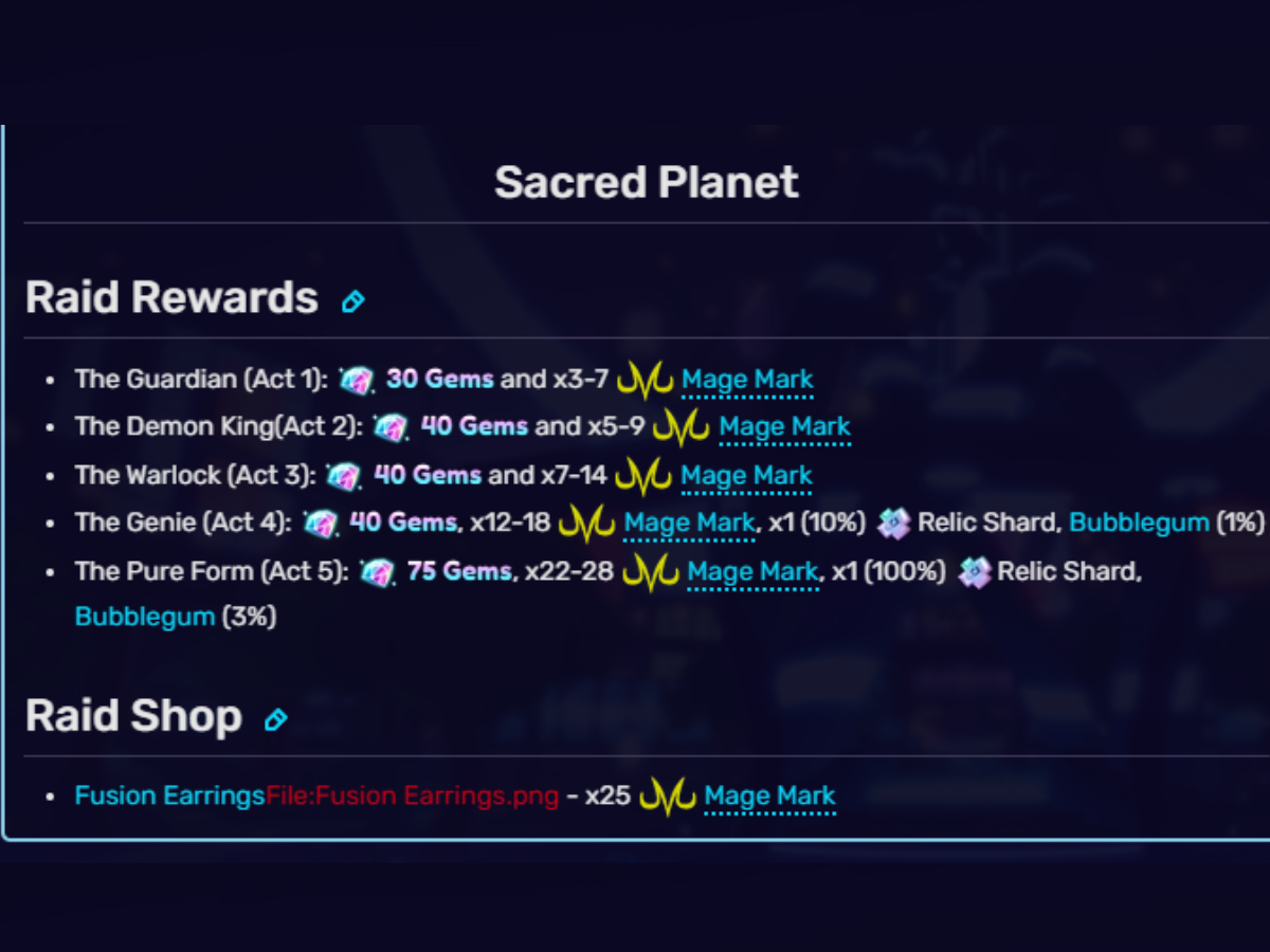 - 纯形式(行为5):75宝石,x22-28法师标记,x1(100%)遗物碎片,泡泡糖(3%)