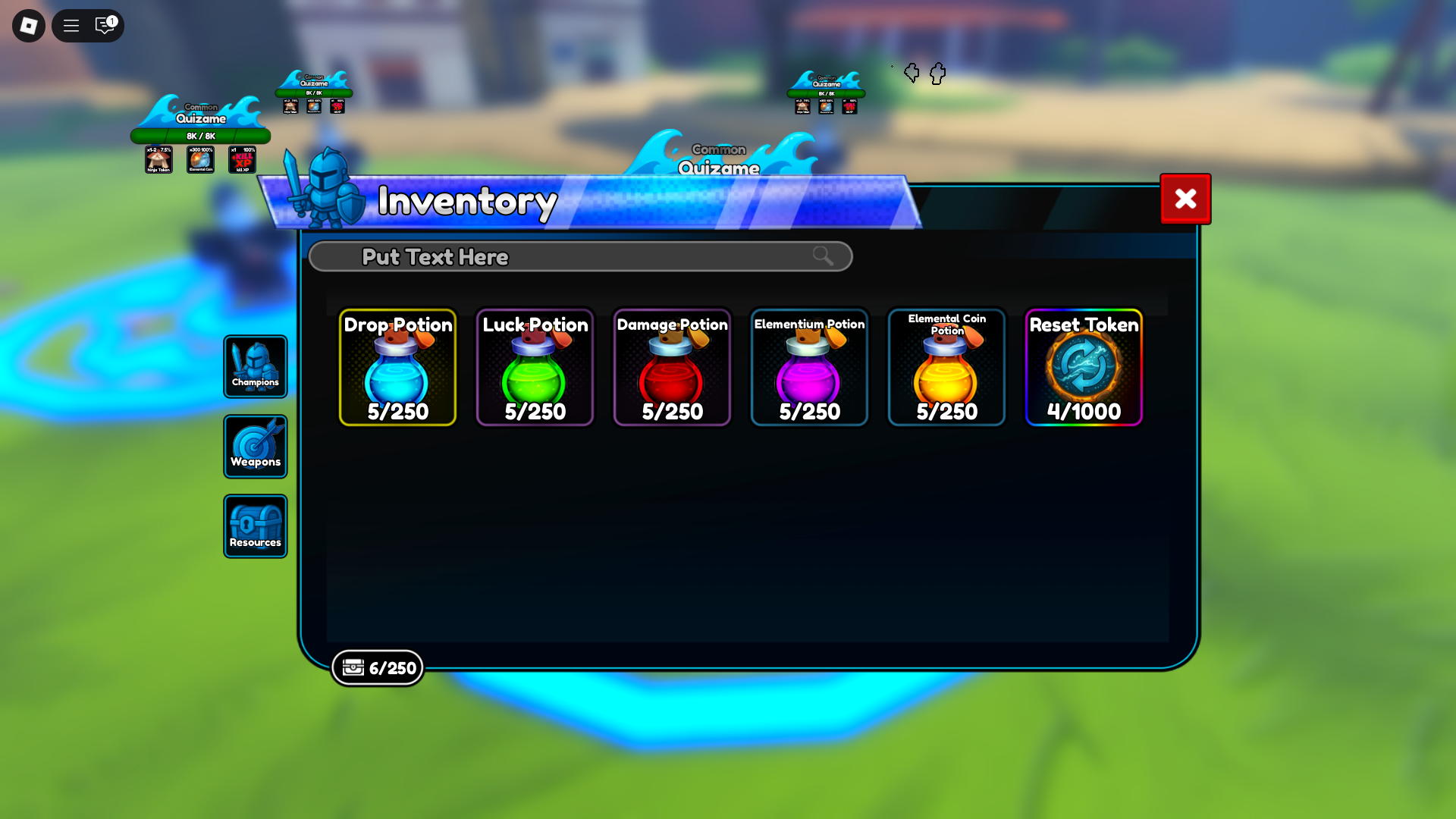 | 1k 赞 | 伤害药水、元素药水、掉落药水、元素金币药水、幸运药水和重置令牌 | 积极的 |