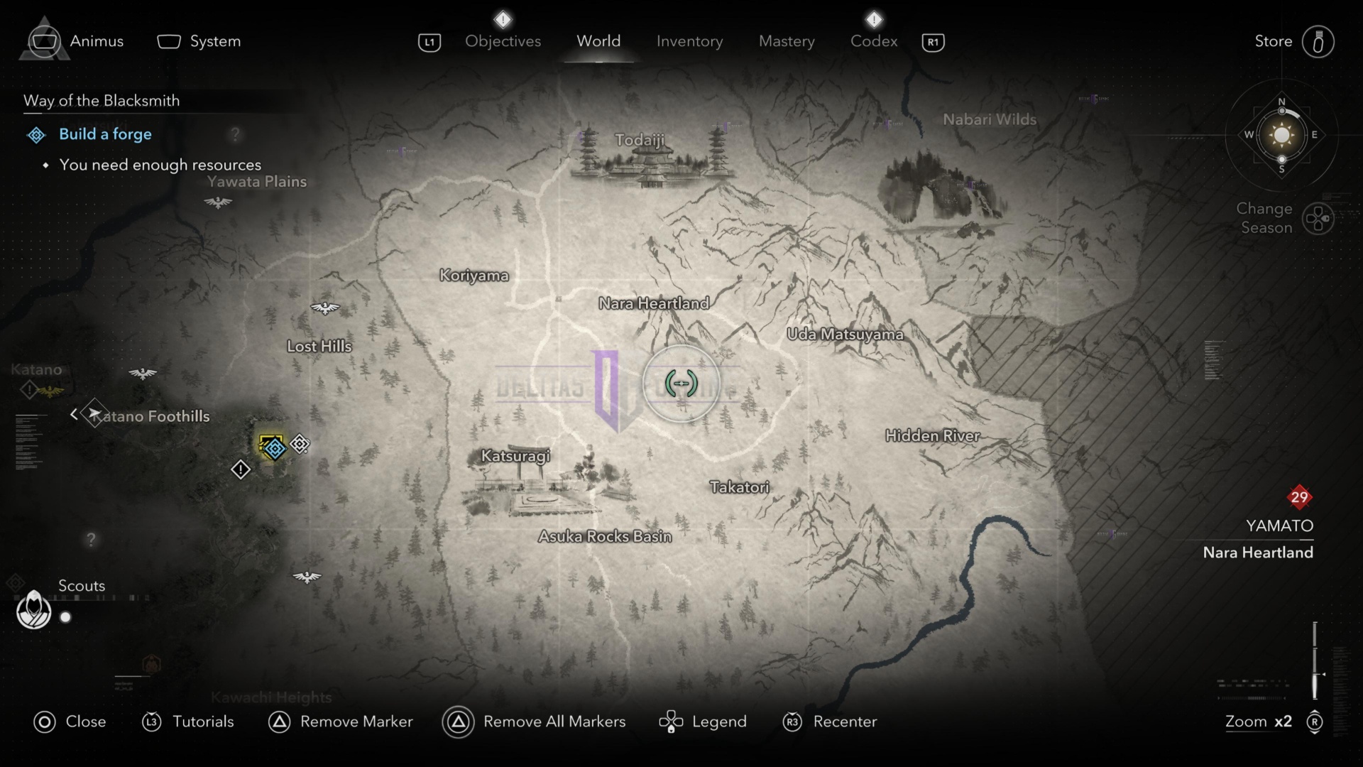 - 铁匠代理 - 同样在大和,铁匠代理位于该地区的最东侧,纪伊以北。此外,在目标位置西北方向稍远的地方还有宇多野塔同步点。