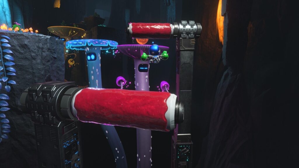 自适应触发器感觉很厚实,为使用它们的每个动作增添了强烈的机械感。像充满新解锁内容的扭蛋机这样简单的东西让人感觉很吸引人,因为你可以感觉拉动机器并打开你最新的奖品的压力。这种对 PlayStation 5 硬件的崇敬,以及诸如感受控制器中关卡中收集的每个机器人之类的智能细节,令人震惊地从来没有感觉像是在迎合。完成一个星系后,您将恢复 PS5 的一部分,您必须清理并重新安装。对于那些只打开 PlayStation 5 独占游戏的人来说,这应该行不通,但控制器的感觉方式的小细节加上这些时刻所投入的爱和感染性关怀,都让这感觉特别和有趣。