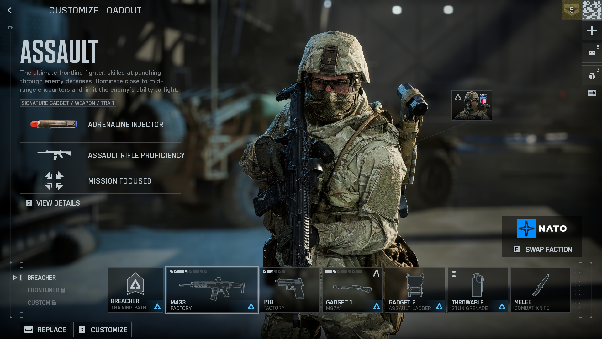 这M433是主武器的绝佳选择。它提供了良好的伤害和控制。至于您的第一个小工具,请使用SS26燃烧霰弹枪来对付附近的敌人。第二个小工具插槽可以填充M320A1 HE,这是一个启动器。如果适合您,您可以将此小工具替换为其他主要武器。最后,闪光手榴弹非常适合推动敌人。