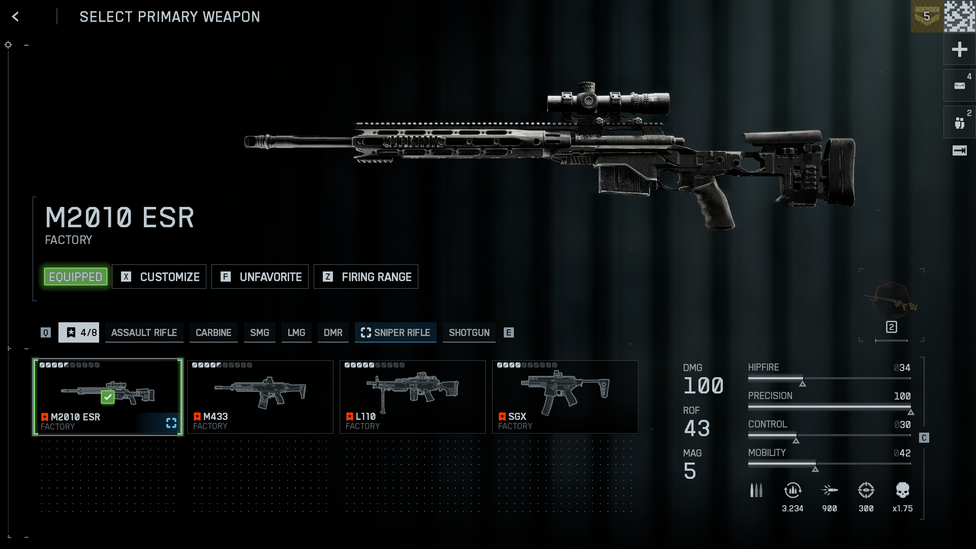 下面的构建重点是最大限度地提高 M2010 ESR 的一次性功能,同时保持移动性。最初的目标是让每次射击都有意义,为此,如果您错过爆头或需要攻击多个目标,5RND 弹匣可以让您更快地进行后续射击。