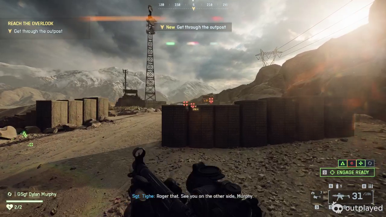 任务开始时,Dagger 1-3 已降落在塔吉克斯坦的地面上。你的第一个目标是清除守卫通往主基地路线的大型帕克斯前哨基地。当你通过初始防御阶段时,你将参与远程交火和近距离战斗。