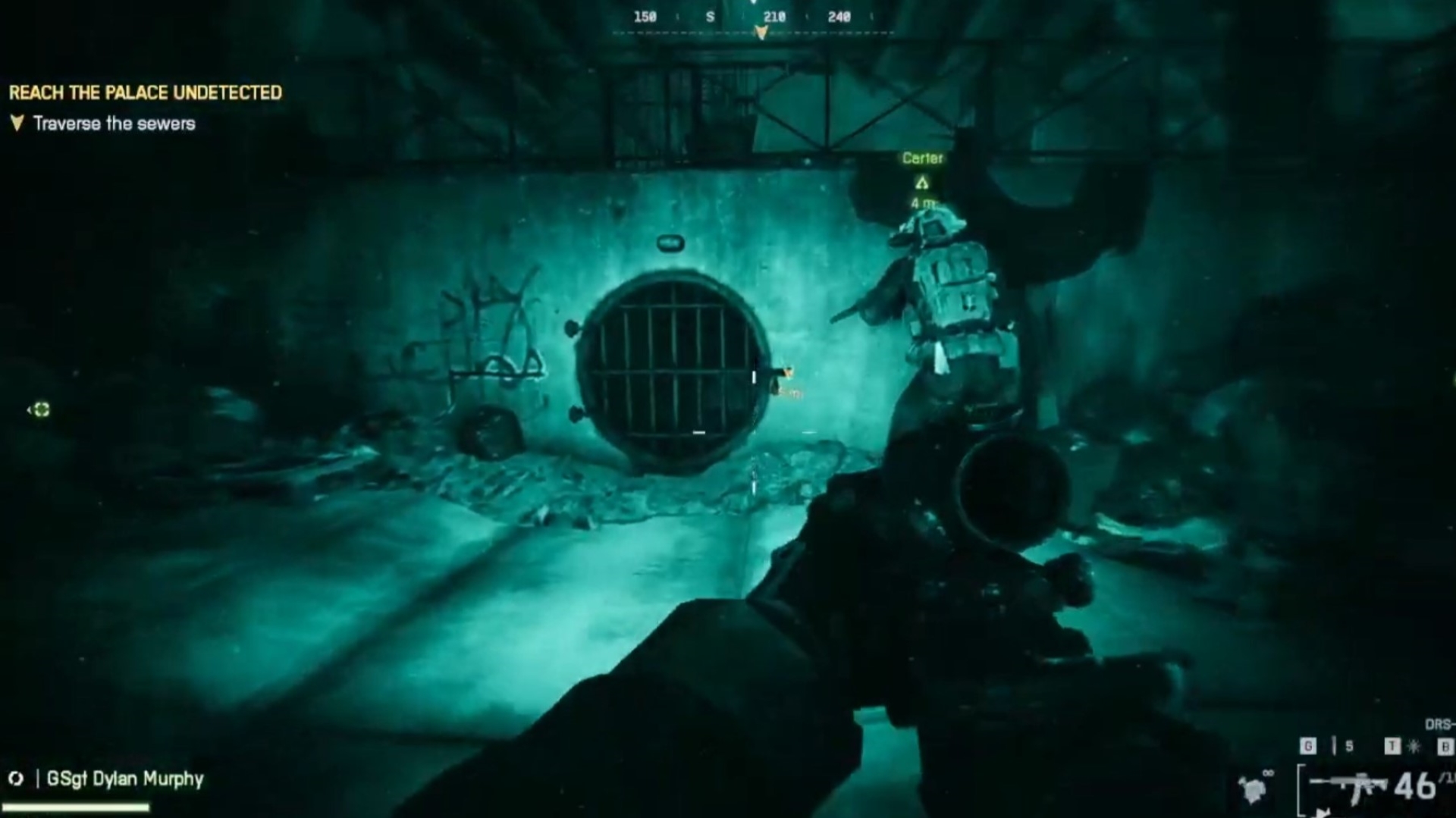 你的首要目标是保持低调并前往宫殿。然而,要做到这一点,你必须穿过下水道。跟随你的团队穿过狭窄的下水道,同时获取更多有关任务的情报。很快,你就会发现一些帕克斯士兵在该地区巡逻。等他们走开,再继续前行。现在,你一边拿着火一边穿过街道。继续跟随队伍,直到找到一名孤独的帕克斯士兵。用你的近战让这个人入睡。之后,等待你的队伍发号施令并消灭 Pax 小队。使用小巷并按照命令默默前进,很快你就会完成这个目标。