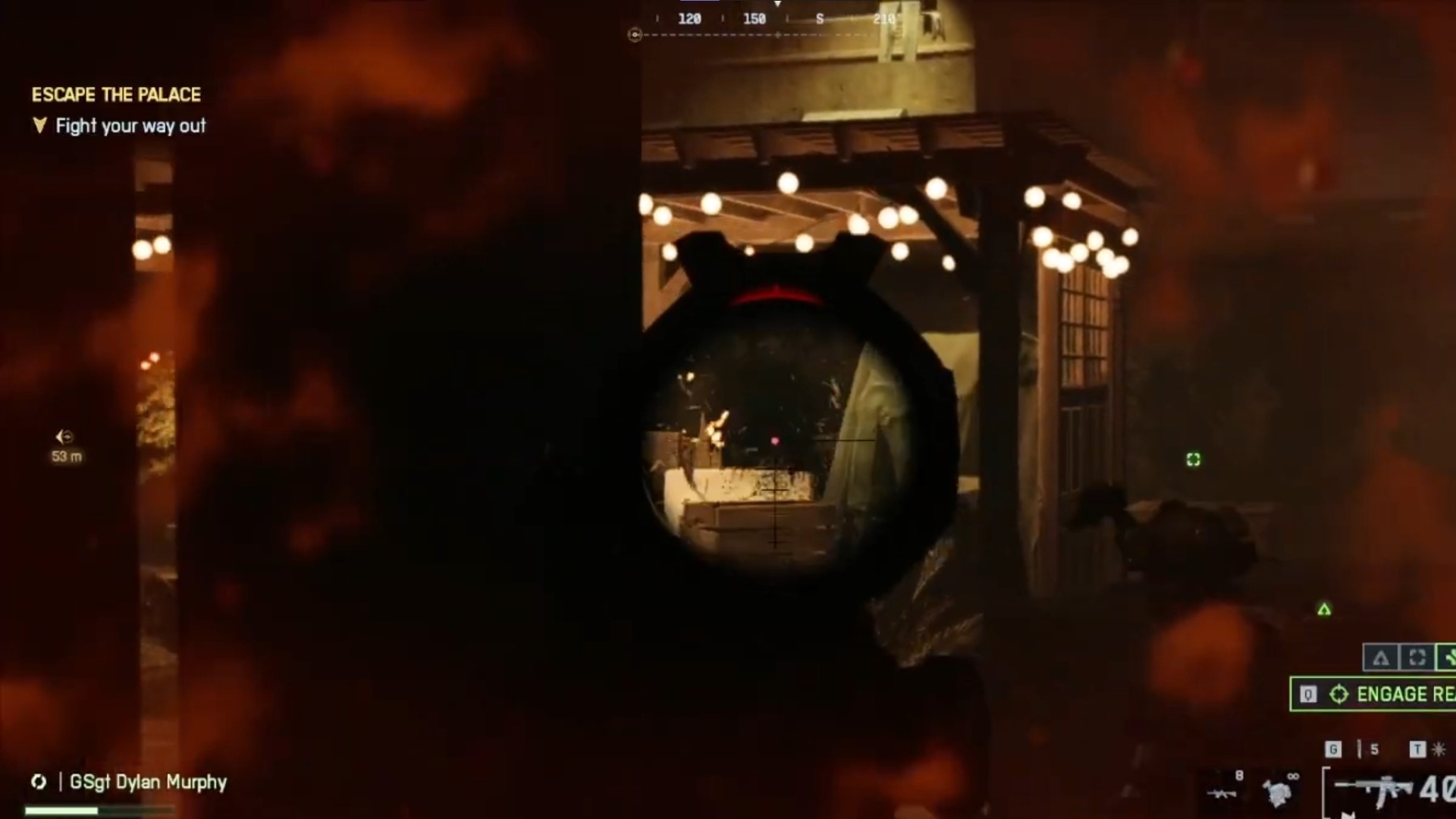 现在是时候找到线人了,要做到这一点,你必须进入宫殿。干掉帕克斯士兵以清理前方的道路并继续前进。经过一段简短的过场动画后,整个团队将成功潜入宫殿场地。由于该区域太亮,您的下一个目标是切断电源。使用墙壁和其他障碍物作为掩护到达下一个标记位置。切断电源后,您可以向任何敌方士兵开火。清理底层,然后清理上层。检查所有房间寻找线人,很快你就会找到塞利姆。然而,他因伤去世,但墨菲建议用他的拇指进行生物识别。