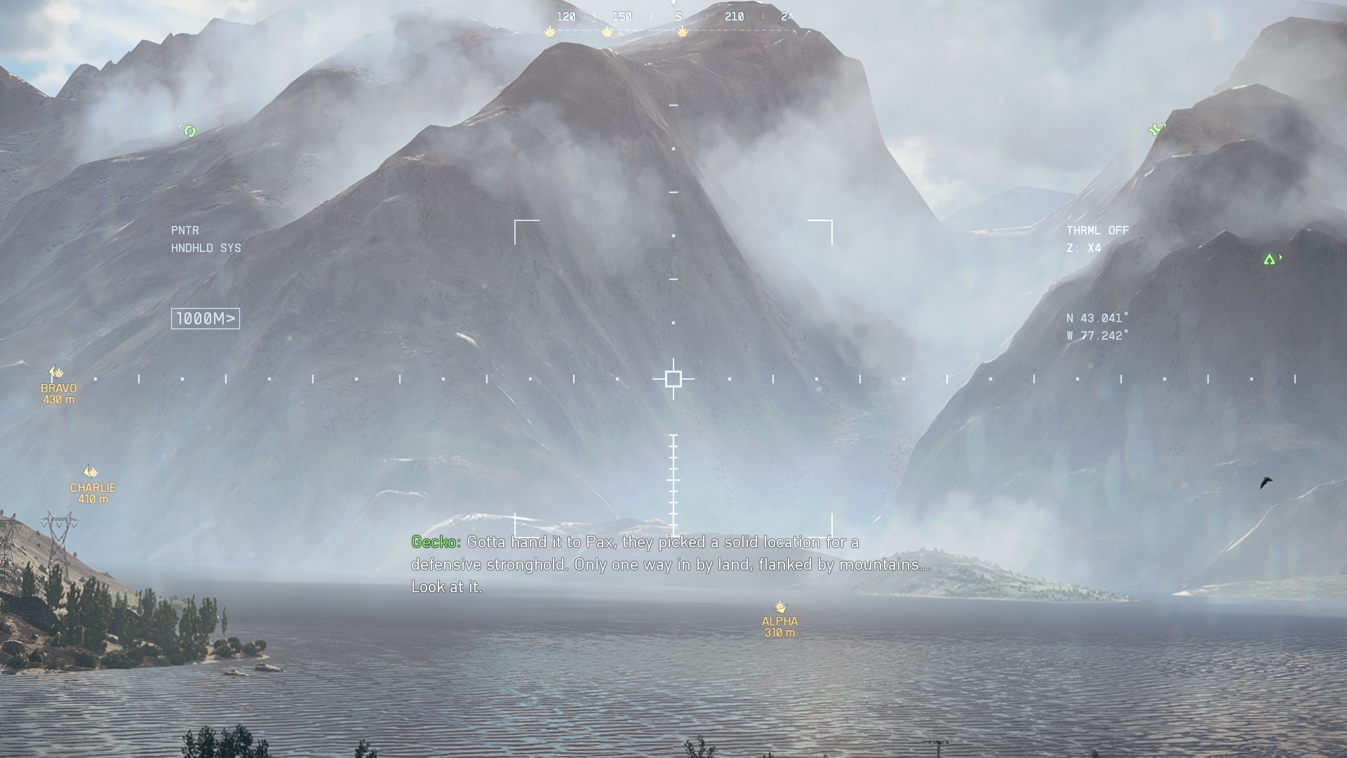 对于您的下一个目标,请跟随引导您到达观景台的标记。小队侦察该区域并指出所有数据链。您的目标是干掉数据链 Alpha、数据链 Bravo 和数据链 Charlie。你可以把任何人作为你的第一个目标。使用无人机轰炸敌人并摧毁数据链。