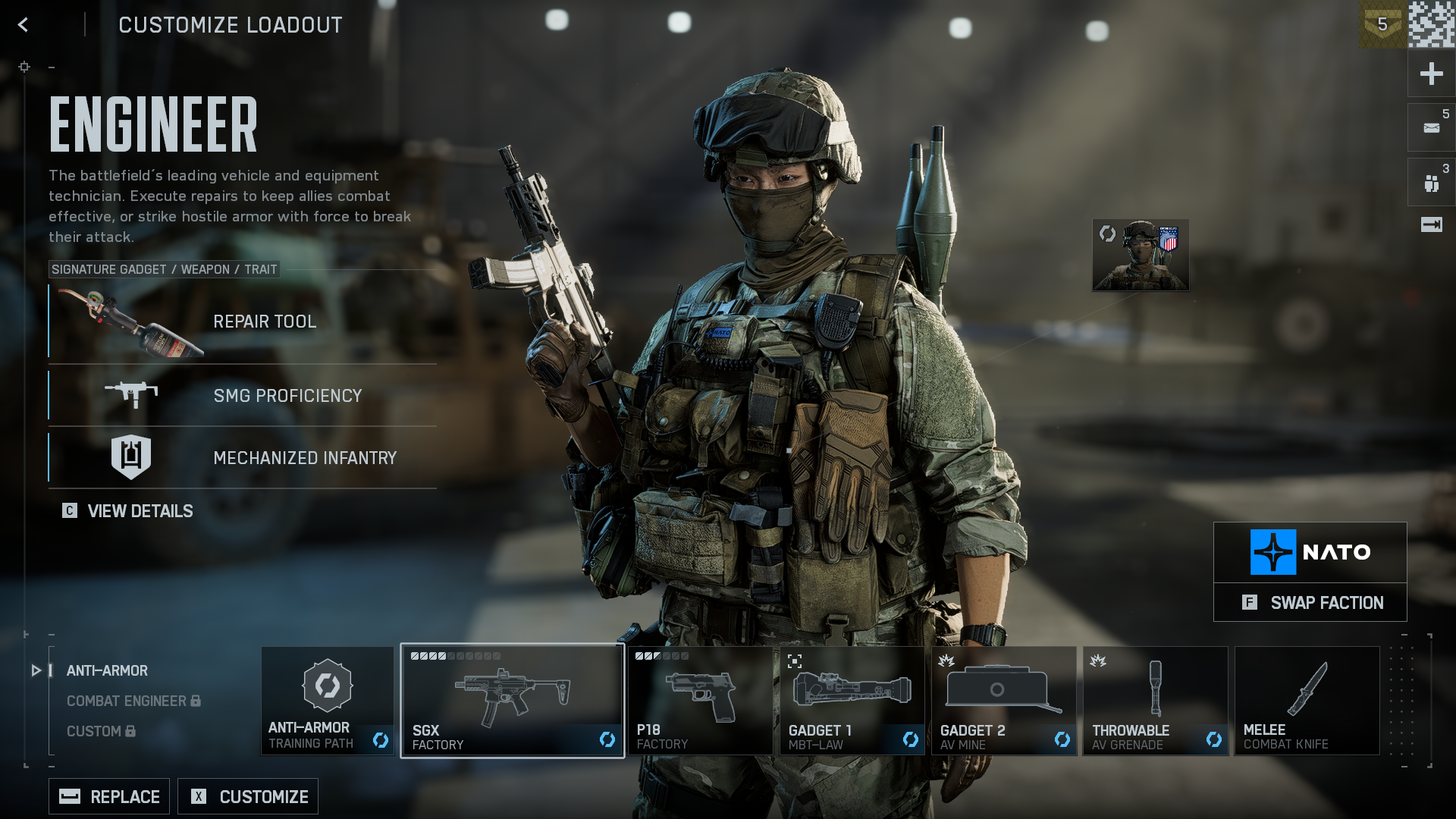 由于工程师阶级非常喜欢冲锋枪,所以你可以选择新交所。这种冲锋枪具有良好的腰射控制能力并提供出色的机动性。您还可以选择PW7A2如果你想要一把子弹速度更快的枪。第一个小工具插槽属于RPG-7V2,一种可以摧毁任何东西的非制导标准火箭发射器。对于第二个小工具,您可以选择任何反车辆地雷。最后,使用反车辆手榴弹作为投掷物,并使用大锤进行近战。