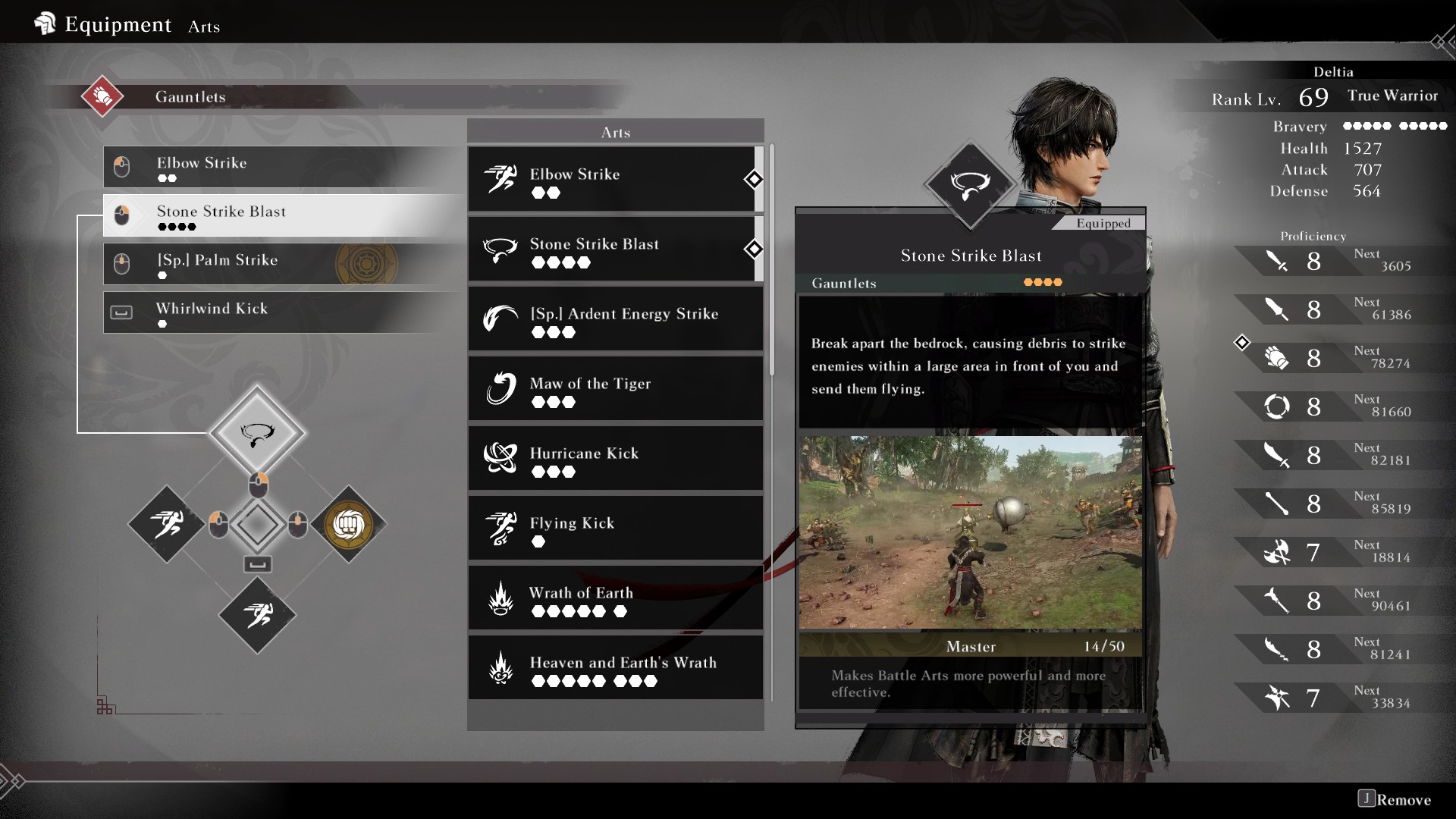 战斗艺术是战斗中使用的动作或技能,消耗Barvery,即使用它们所需的资源。勇敢是屏幕左下角的八角形图标(橙色)。您可以增加勇敢的总量以及如何通过技能被动、便携性和武器特性来获得它。你可以通过使用技能来掌握技能,获得额外的效果,例如降低勇敢成本、增加射程或增加伤害。