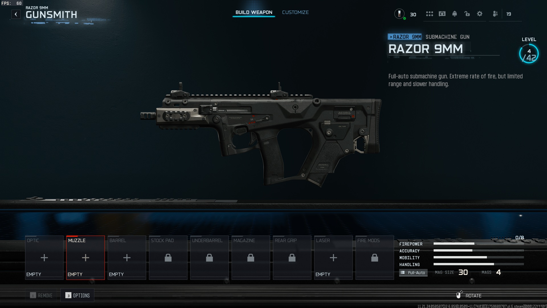笔记:要继续此构建,您必须解锁自定义加载。它在 4 级可用,当你达到 I 级少尉(25 级)时,剃刀 9mm 就会解锁。