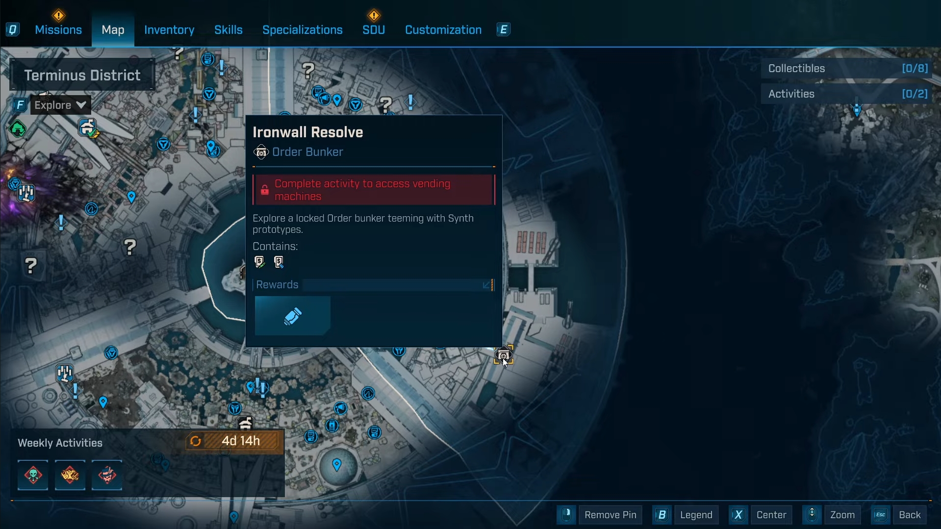 完成“One Gassy Issue”支线任务,获得遍布城市的腐蚀性罐并解锁铁墙解决令地堡。 “One Gassy Issue”是一个发生在Dominion City Fades区的任务,你需要完成“Means of Ascent”主线任务才能解锁它。
