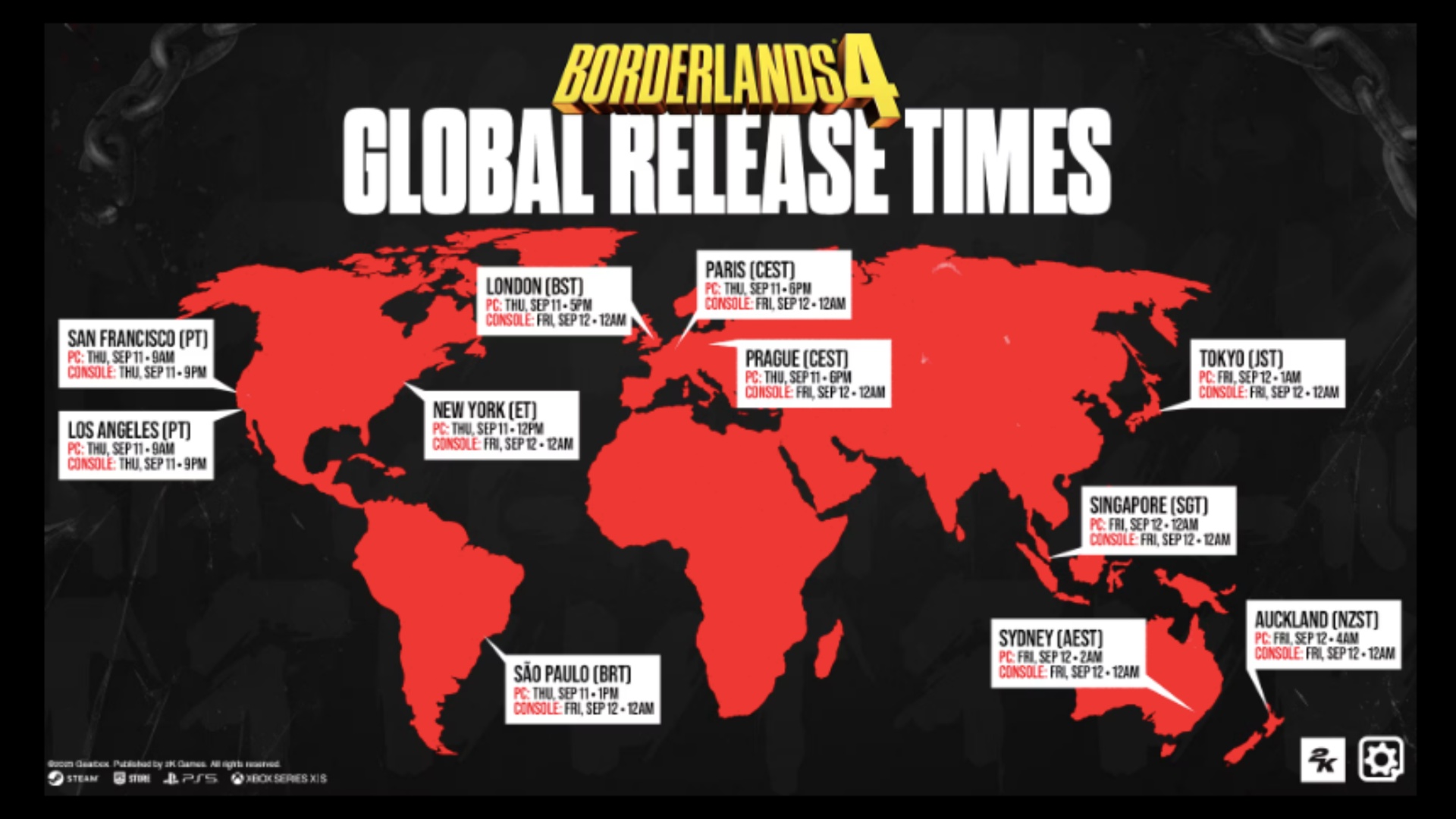 但是,需要注意的是,发布时间会根据您所在的时区和所使用的平台而有所不同。开发商在其官方网站上宣布了游戏的发行日期。《无主之地 4》将于 2025 年 9 月 12 日上线。以下是倒计时,可帮助您更轻松地跟踪发布情况。