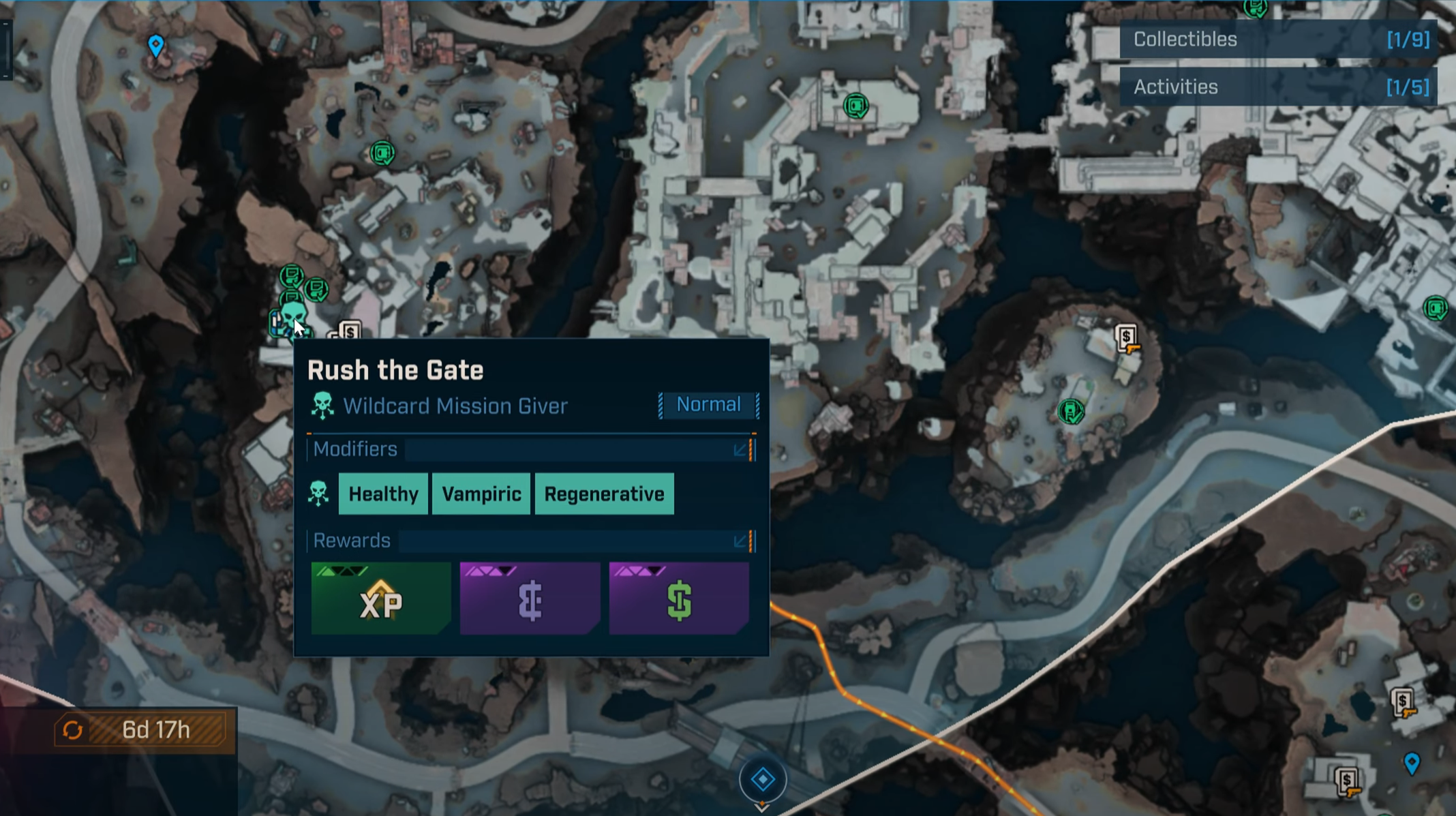 通配符任务每周都会举办,每周四上午 09:00(太平洋时间)进行。在此切换期间,其他功能(例如 Encore Boss 和黑市地点)也会重新洗牌。登录游戏并进入地图后,在屏幕左下角,您会发现一个新的“通配符”。
