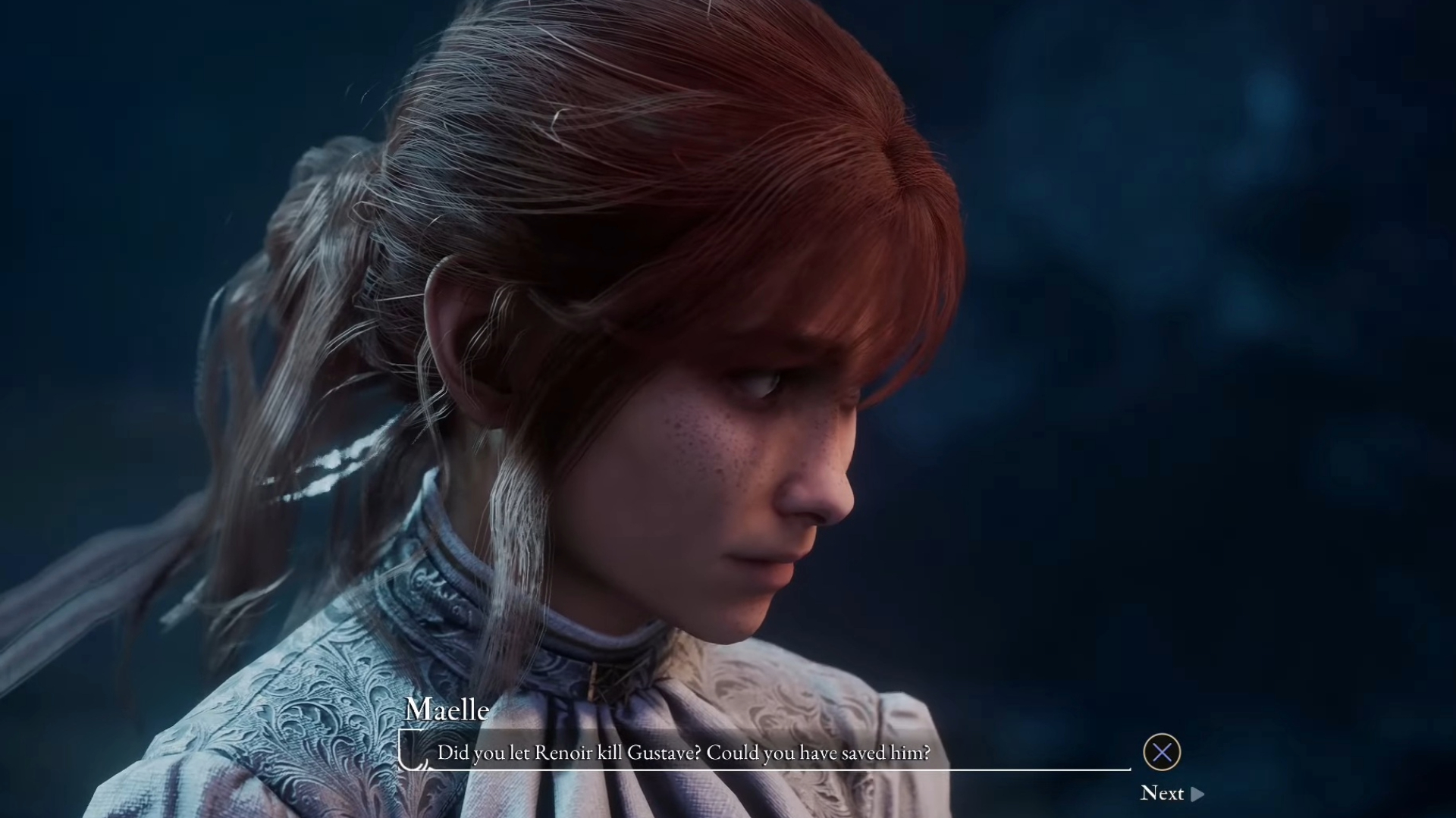 告诉Maelle的真相是,Verso可以拯救Gustave那天是这里最好的追索。 Verso将解释他不确定如果Gustave没有丧命,Maelle是否会帮助他。尽管Maelle起初听到此消息感到不高兴,但她确实意识到了Verso的观点,尤其是知道他们现在对画布和辅助者的了解。情感对话以Verso和Maelle破坏了痛苦者的塔楼,并留下了雷诺阿的信息。