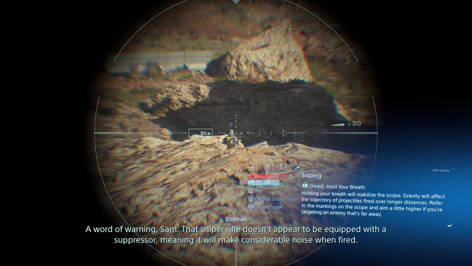 《死亡搁浅 2》中的 Tranq 狙击步枪有子弹掉落效果。这意味着,重力将影响射弹在较长距离内击中的位置。根据您射击的位置和射击距离,您可能需要在瞄准敌人时瞄准更高一点。