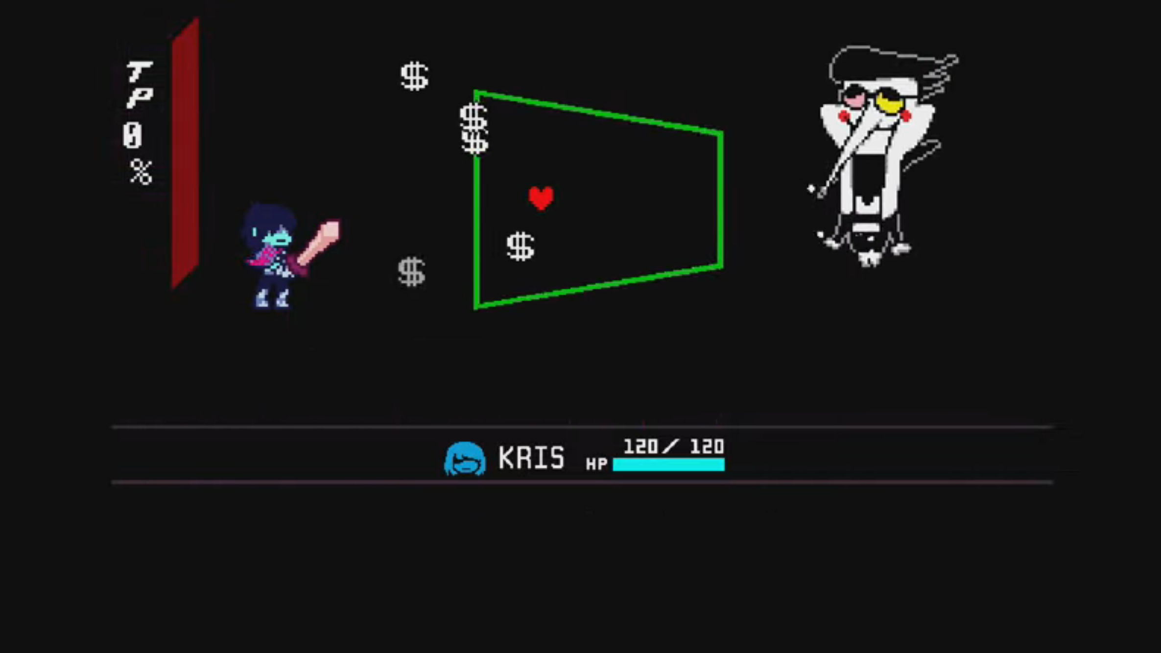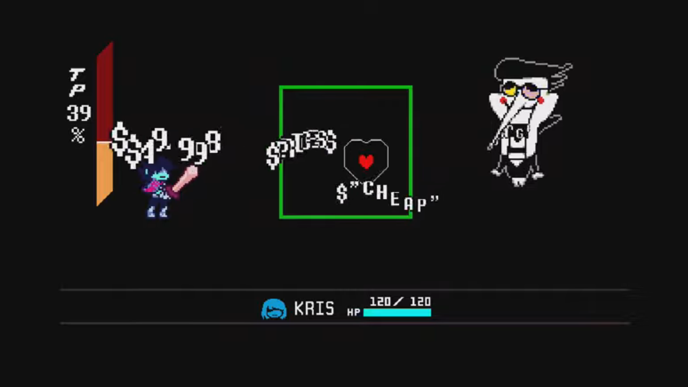 Spamton试图与您达成协议。选择“检查”后,Spamton将开始将美元标志吸入他的张嘴里。您的目标是通过将心脏在绿色盒子内移动到左侧,从左侧躲避这些传入的美元标志。