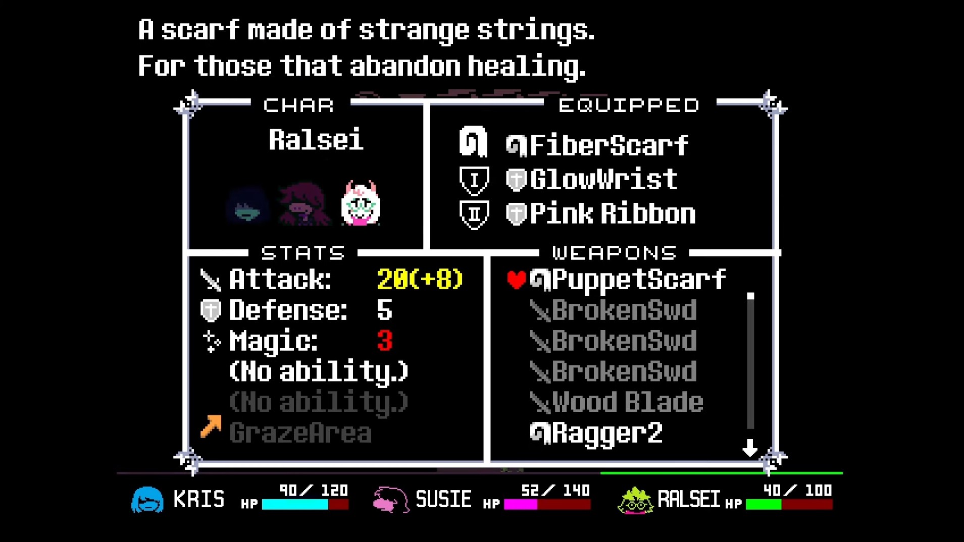 挥舞着傀儡围巾,拉尔赛的攻击伤害变得与克里斯和苏西相似。然而,你必须更频繁地收集和使用治疗物品,因为他的治疗祈祷会变得不那么有效。此外,傀儡围巾将是您在怪异路线上从 Spamton NEO 获得的唯一奖励,因为和平结束战斗是不可能的。