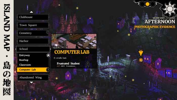 同学都成为党员。菲伊可以和他们建立关系。通过一起战斗、选择正确的对话选项和赢得迷你游戏来建立联系。建立联系可以解锁某些支线任务。岛上的所有区域都可以在类似真女神转生的静态地图上找到。还有一个非常像《女神异闻录》的日历。菲伊在学校生活与恶魔战斗之间取得平衡,为了实现一个目标,时间向前推进。不过,《恶魔学校》中的学校模拟游戏并没有太多特色。该游戏借鉴《女神异闻录》系列的主要机制是角色关系。学校生活的元素主要是审美的。