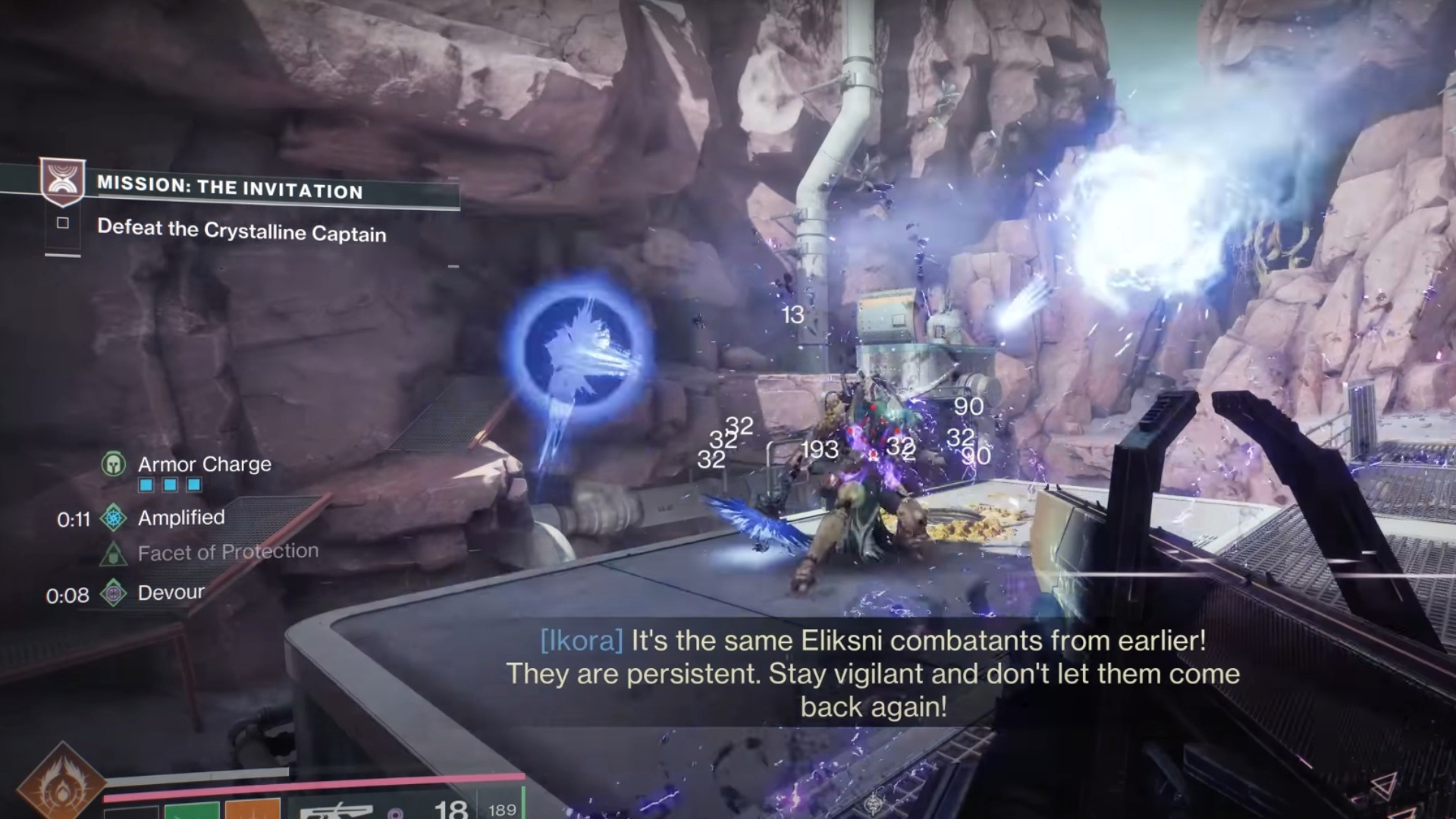与流亡侍从战斗后,继续冲向另一个塔。警惕埃利斯克尼敌人,您需要在这部分任务中与他们战斗。很快,你的任务目标将告诉你杀死水晶队长。你可以用你的超级技能打倒boss,并且敌人不存在进入护盾模式的风险。