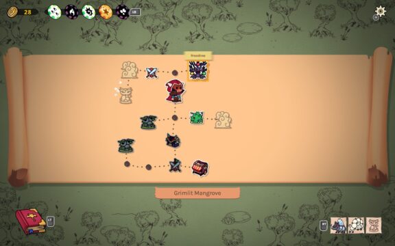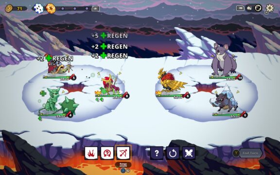 Dicefolk 拥有超过 100 个嵌合体,其战斗具有一定的多功能性。每个嵌合体都有一种被动能力,他们可以将其带入战斗,从而提高他们在团队中的整体生存能力。一些被动能力就像在你的领导者攻击时攻击敌人领导者一样简单,当你的团队或敌方团队旋转他们的怪物圈时,一些减益敌人,你获得的嵌合体可以为你的奔跑创造或破坏团队组成。每个回合由 3 个生物群落组成,每个生物群落都有 3 个奇美拉雕像。当你参观它们时,雕像会破裂,嵌合体会显露出来。如果您选择随身携带,其他两座雕像就会消失,因此最好的选择通常是在做出决定之前参观所有 3 座雕像。找到所有 3 个,您就可以从其中进行选择。你还可以从卷轴师那里收集嵌合体,卷轴师似乎会画出嵌合体并以一定的价格卖给你。