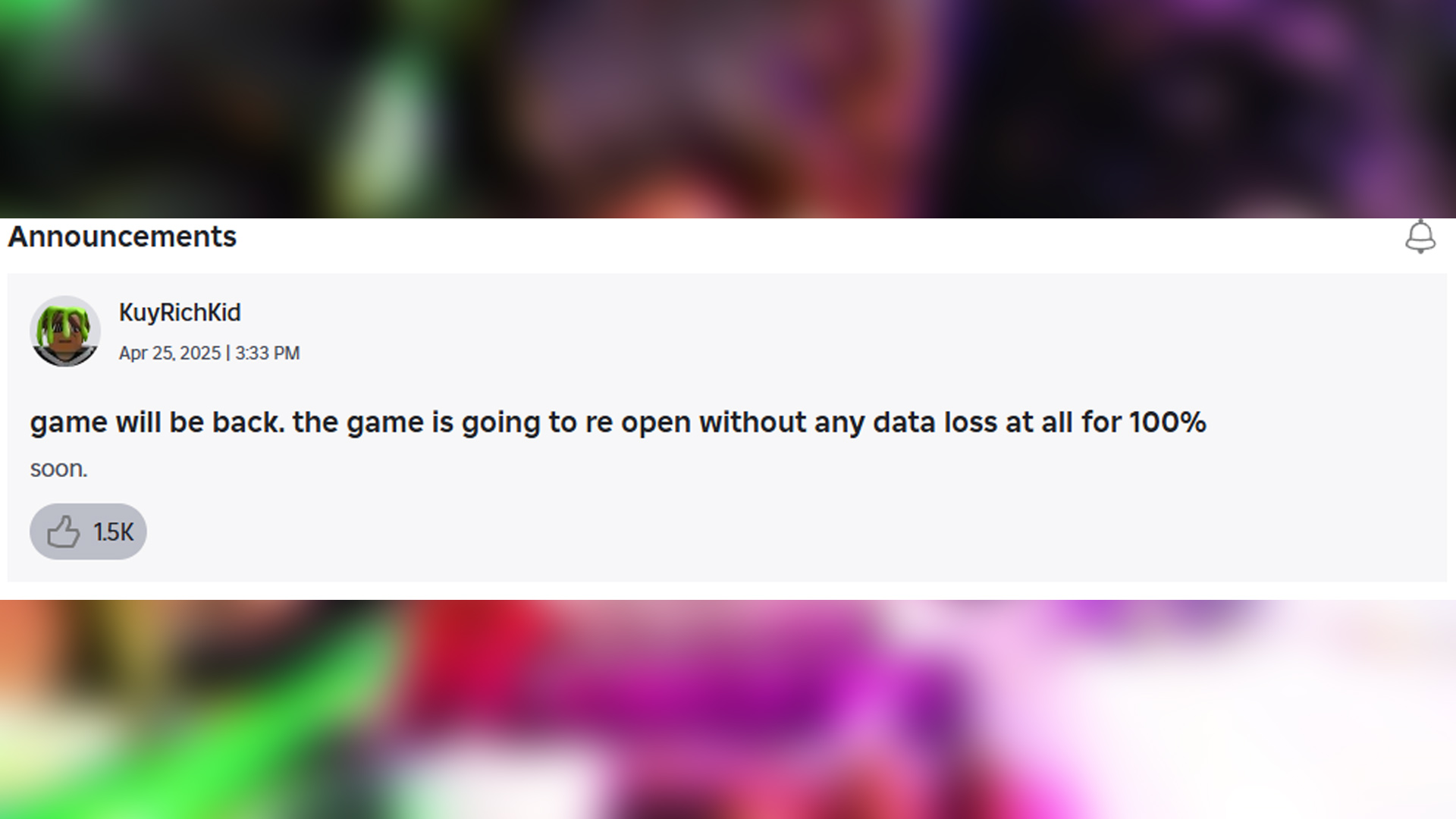 开发者在他们的 Discord 服务器上表示,该游戏可能会在 2025 年 4 月 28 日之前回归。对于那些不知道的人来说,Roblox 支持团队在周末不工作。因此,开发商无法提前发布游戏。不过玩家们不用担心,游戏很快就会回归。据猜测,该游戏可能会以新名称发布。开发人员在他们的 Discord 服务器中声明了以下内容: