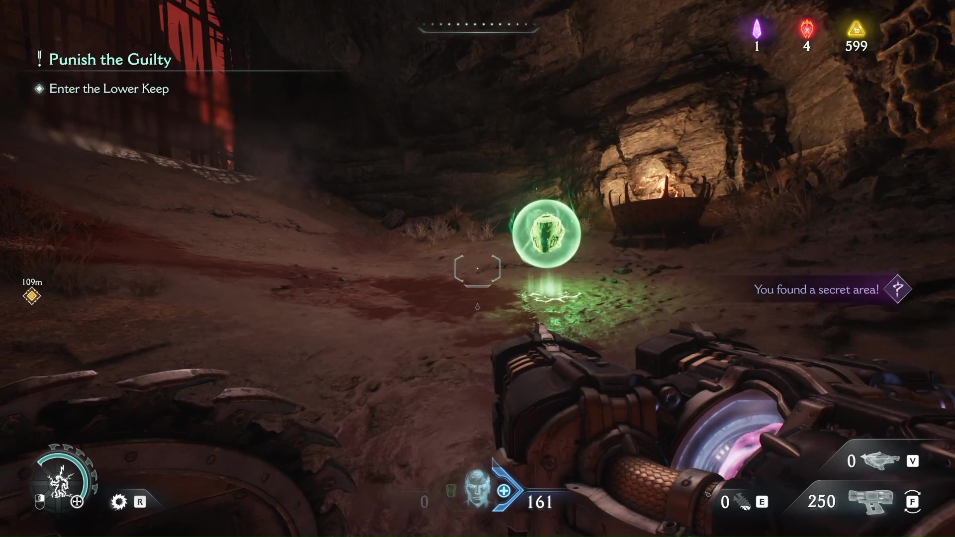 最后一个血腥传送门后面有一个秘密区域。前往那里并击败所有敌人以开辟地下区域。进入有蓝色门的洞穴,在你的右边,你会看到一个紫色的门。使用之前获得的钥匙来获得本章的最后一个红宝石。