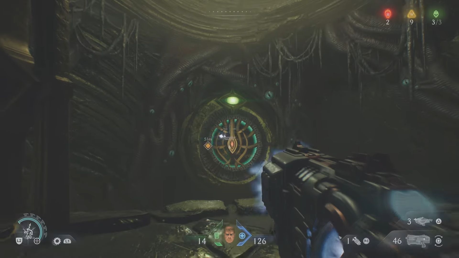 《毁灭战士:黑暗时代》第 15 章以毁灭战士浸入水中开始。从这里开始,向光游去,直到到达干燥的陆地。经过水下深处后,您将到达一个地下区域,前面有一个岩石平台。接近它并与之互动,你就会被提升,在那里你会看到一个巨大的传送门突然出现。但是,门户将被锁定。