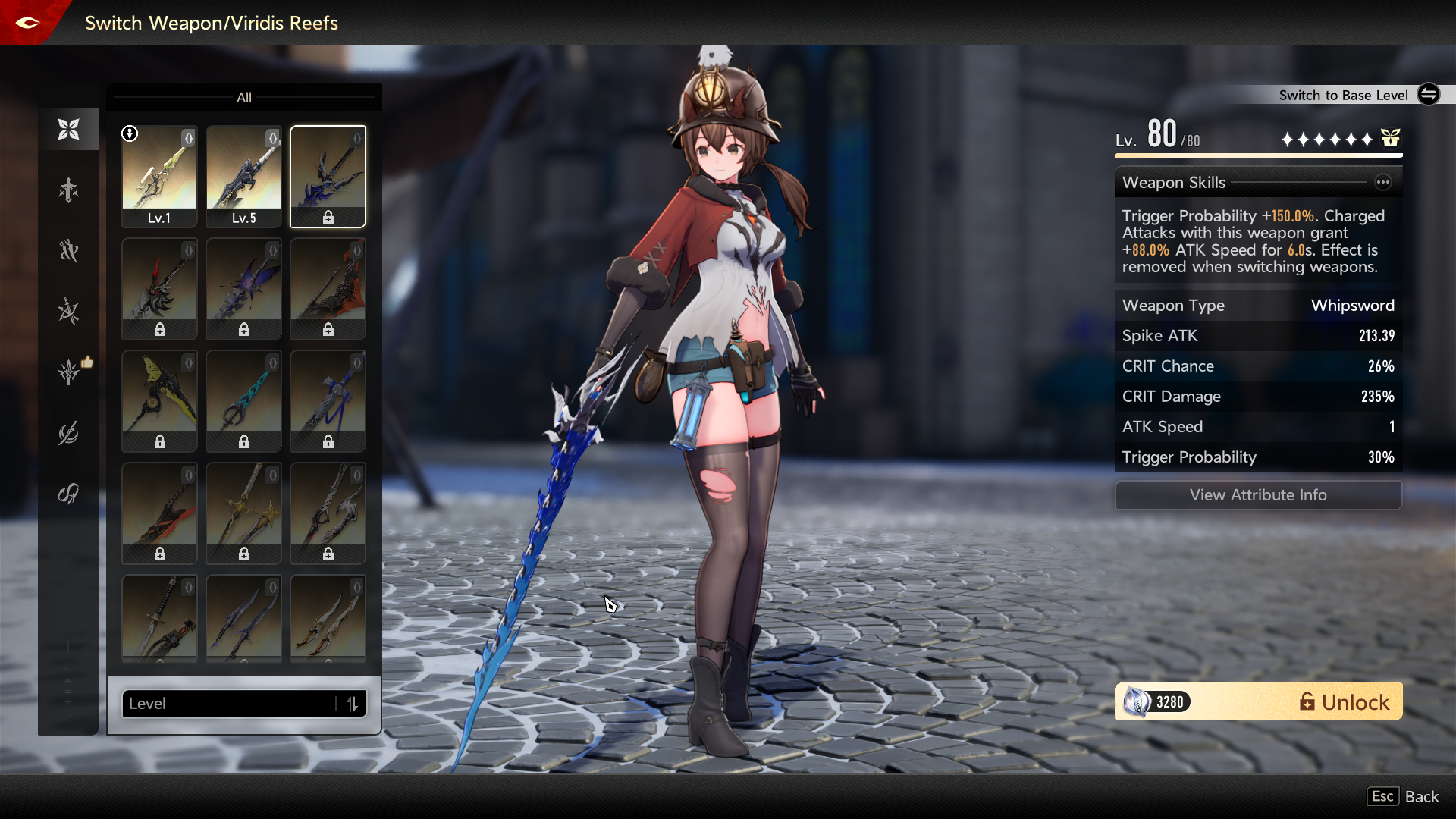 | 维里迪斯礁 | 长钉 | 213.39 | 触发概率+150%。使用该武器进行蓄力攻击可增加 +88% 攻击速度,持续 6 秒。切换武器时效果消失。 |