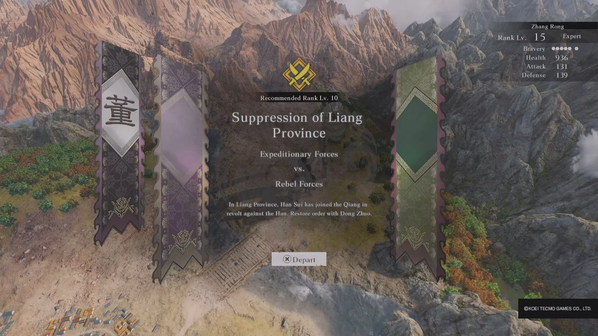 与此同时,你的联军张温、华雄、董卓进攻北方的叛军营地。击败边章,阻止他们的军队到达你的基地。