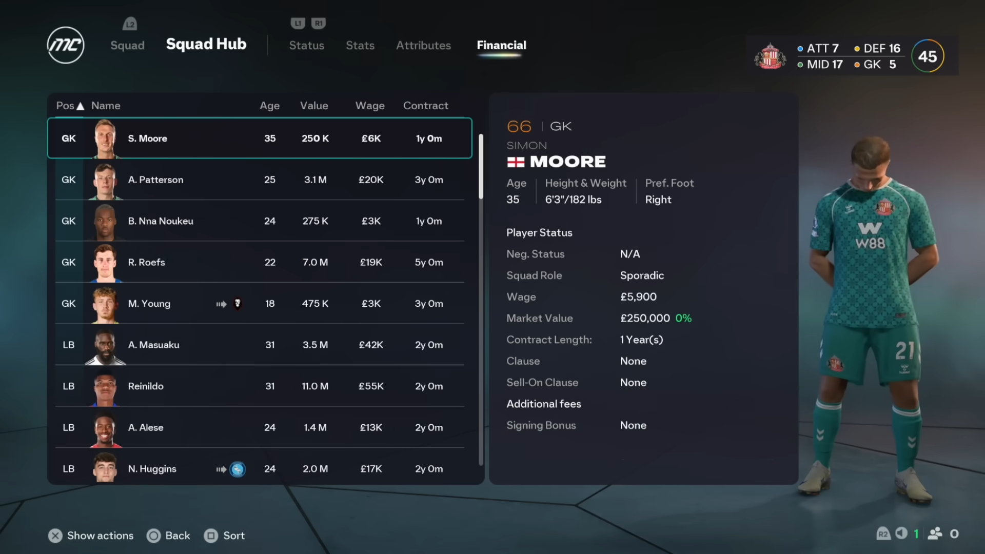 职业生涯模式中的初始团队通常还有很多不足之处。例如,你的球队中有四名守门员不会对你有任何帮助。而且,你的球队中肯定会有走下坡路的球员。尽管听起来很残酷,但尽早摆脱它们将在经济上有利。