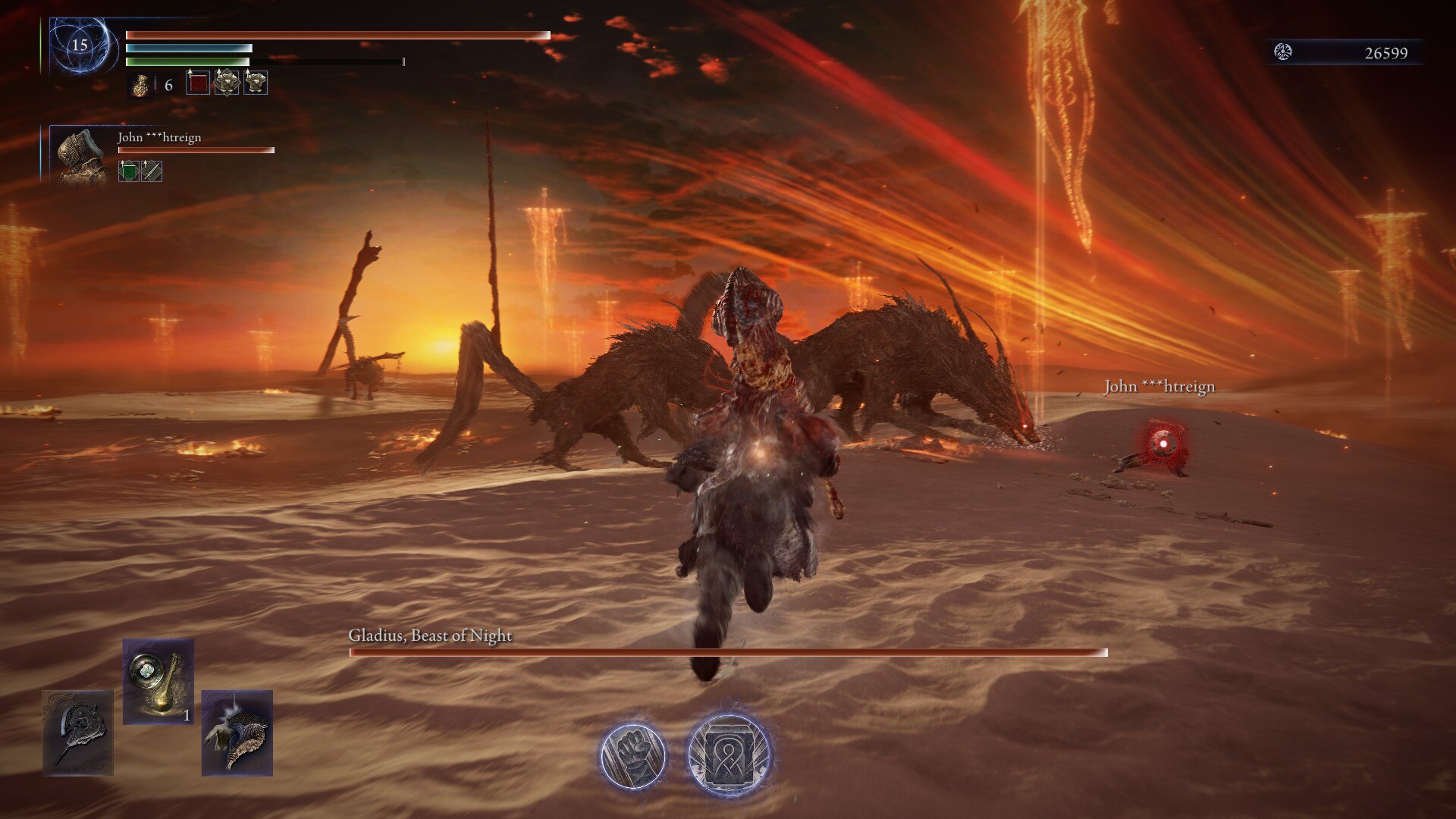这样,你就可以将冰霜和流血叠加在 Boss 身上。此外,请务必携带角色技能冷却时间减少被动也一样。公爵夫人的奥术缩放以及她的重演技能将对对抗 Gladius 有很大帮助。我们还建议使用圣副手武器,最好是匕首。此外,虽然没有必要,但我们建议使用奥古尔的遗迹具有一定的生存能力,这将有助于第一天和第二天。