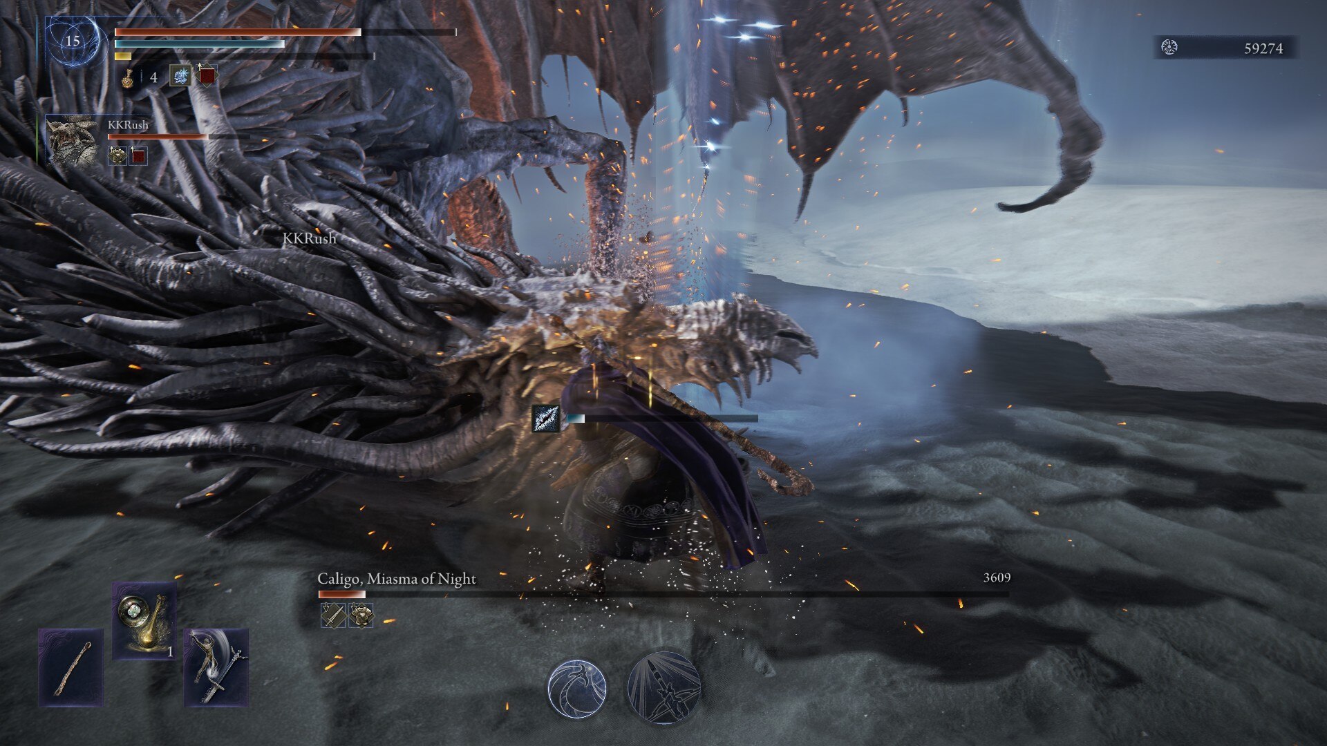 虽然建议使用火焰伤害,但这不是必需的。你可以使用流血,猩红腐烂,甚至毒对阵永暗卡利戈。然而,使用火可以让你对 Boss 施加防御降低减益效果。