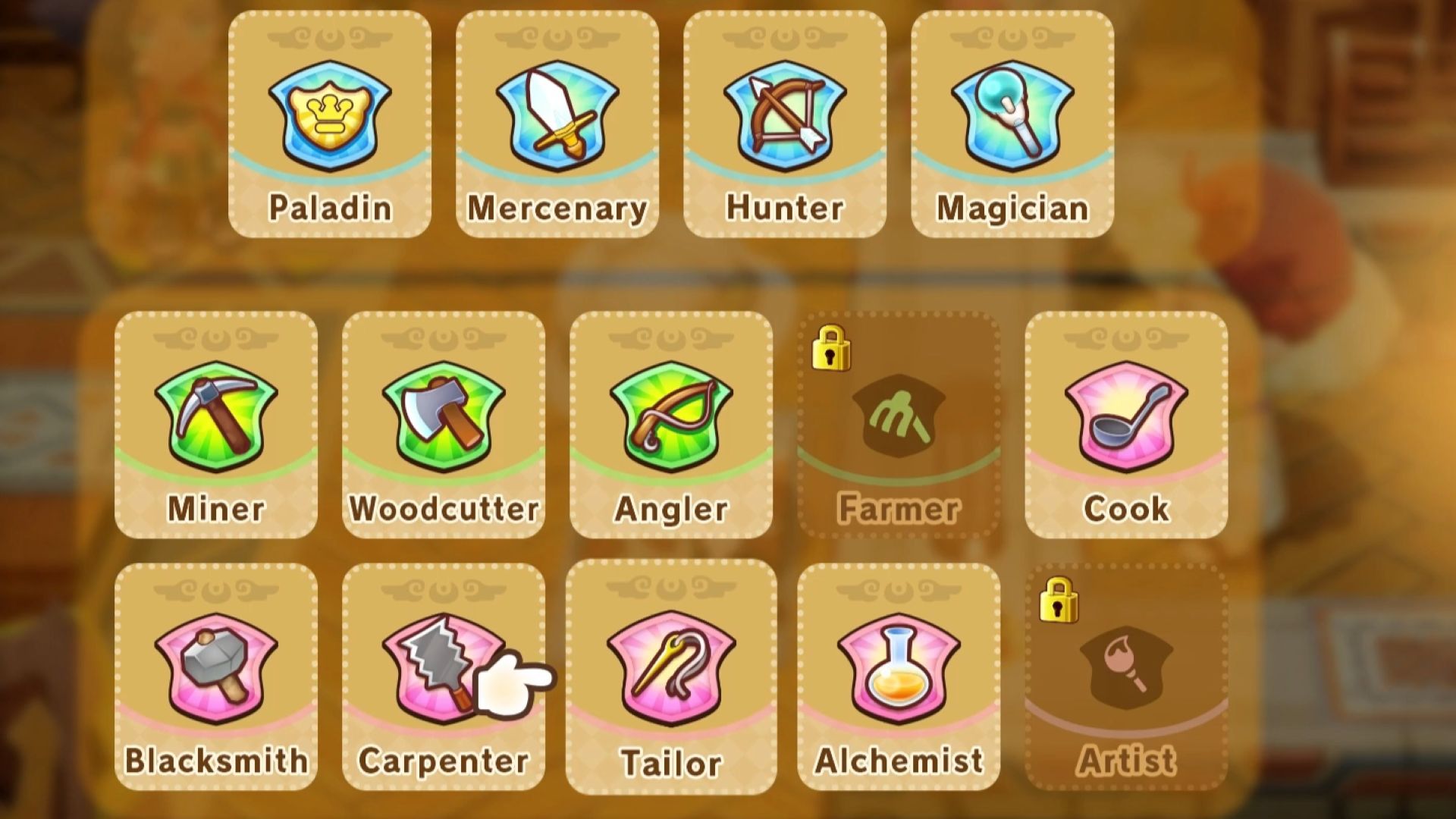 | 采集 | 钓鱼者 矿工 樵夫 农民 | 1. 开采矿物、钓鱼、砍伐树木 2. 努力持续获得优秀评级并瞄准高水平领域 |