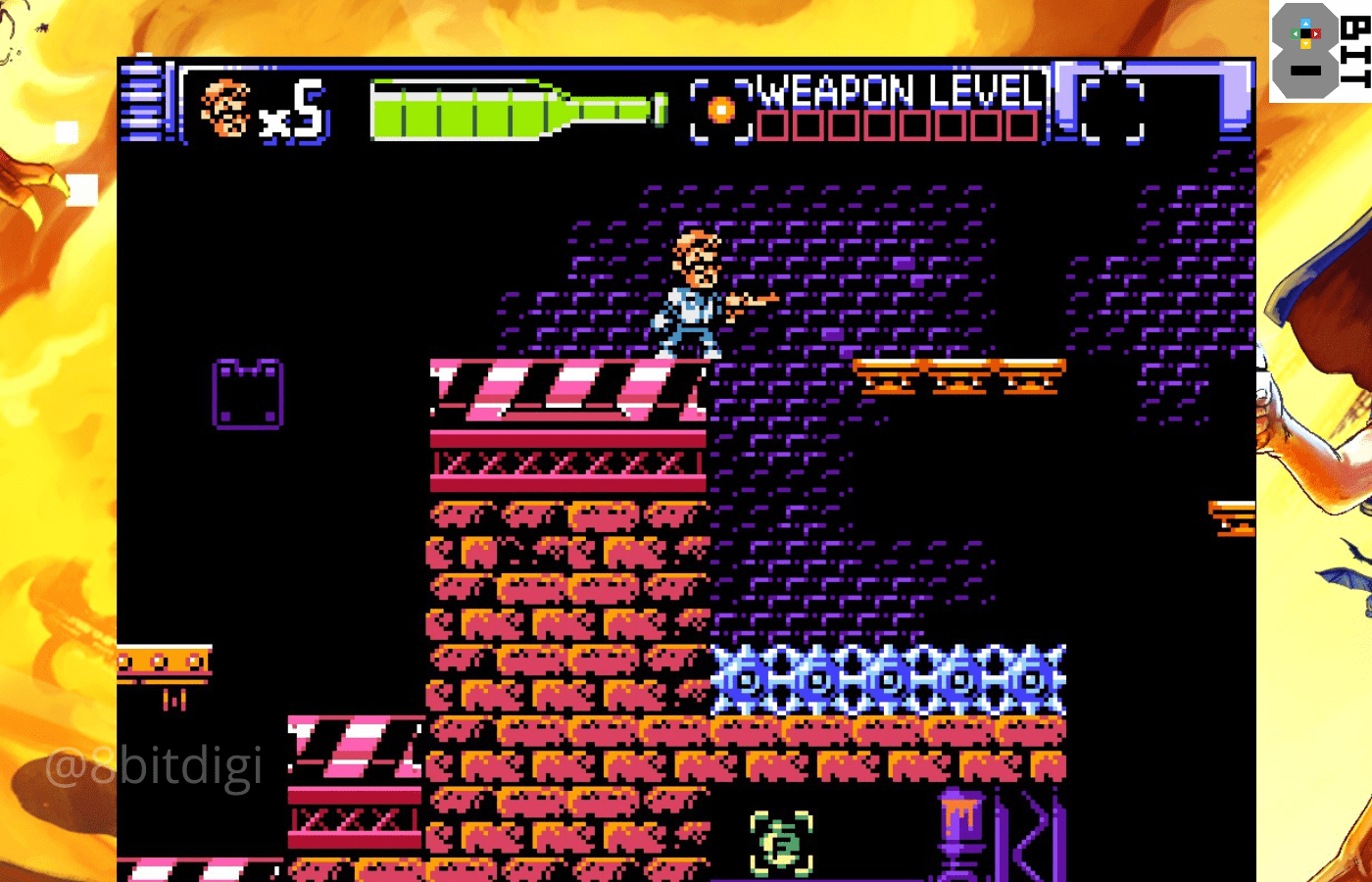 首先,让我们先澄清一点——这不是一款 LJN 品质的游戏。 Angry Video Game Nerd 8-Bit 的图形、游戏玩法和配乐体现了复古风格的美感。然而,它的生活质量功能和机制与现代游戏不相上下。控制反应灵敏,确保跳跃感觉精确,并且轰炸敌人永远不会感到沮丧。然而,你会尖叫“ASS!”在boss战期间。