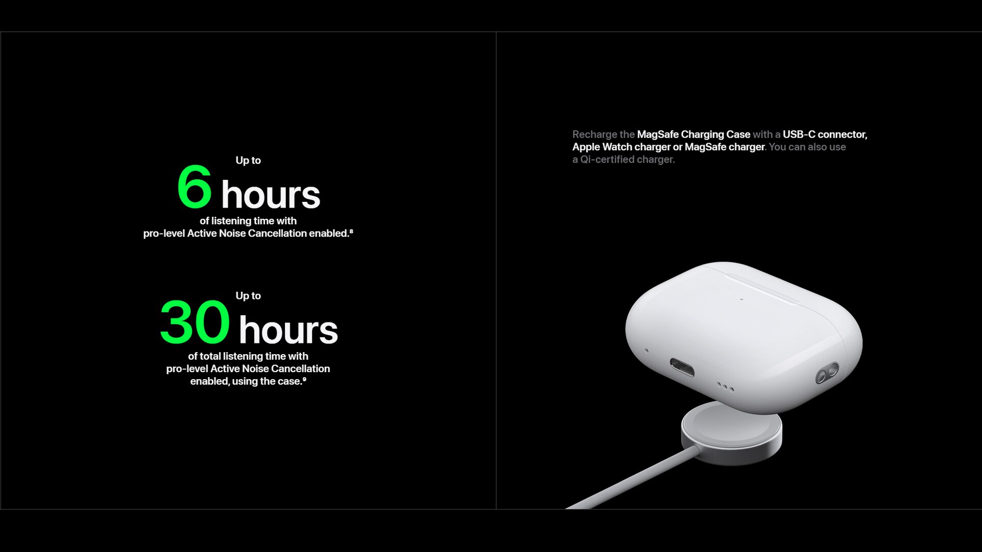 苹果还确保通过个性化的空间声音来吸引发烧友用户。通过这种方法,设备会扫描您的耳朵,并且设置会自动调整以提供最佳的听力体验。 AirPods Pro 2 采用 Apple MagSafe 充电盒,防尘、防汗、防水,防护等级为 IP54。