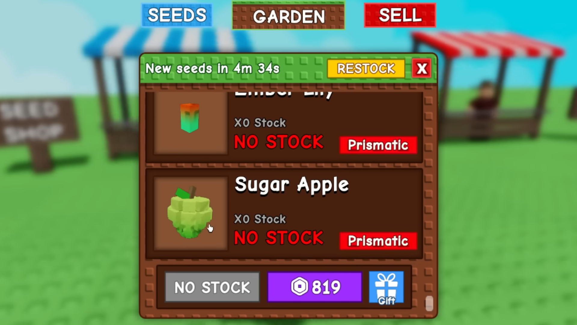 - 在山姆种子店购买:可用 25,000,000 Sheckles 或 819 Robux。以 0.03%–15% 的几率出现,每 5 分钟补货一次。