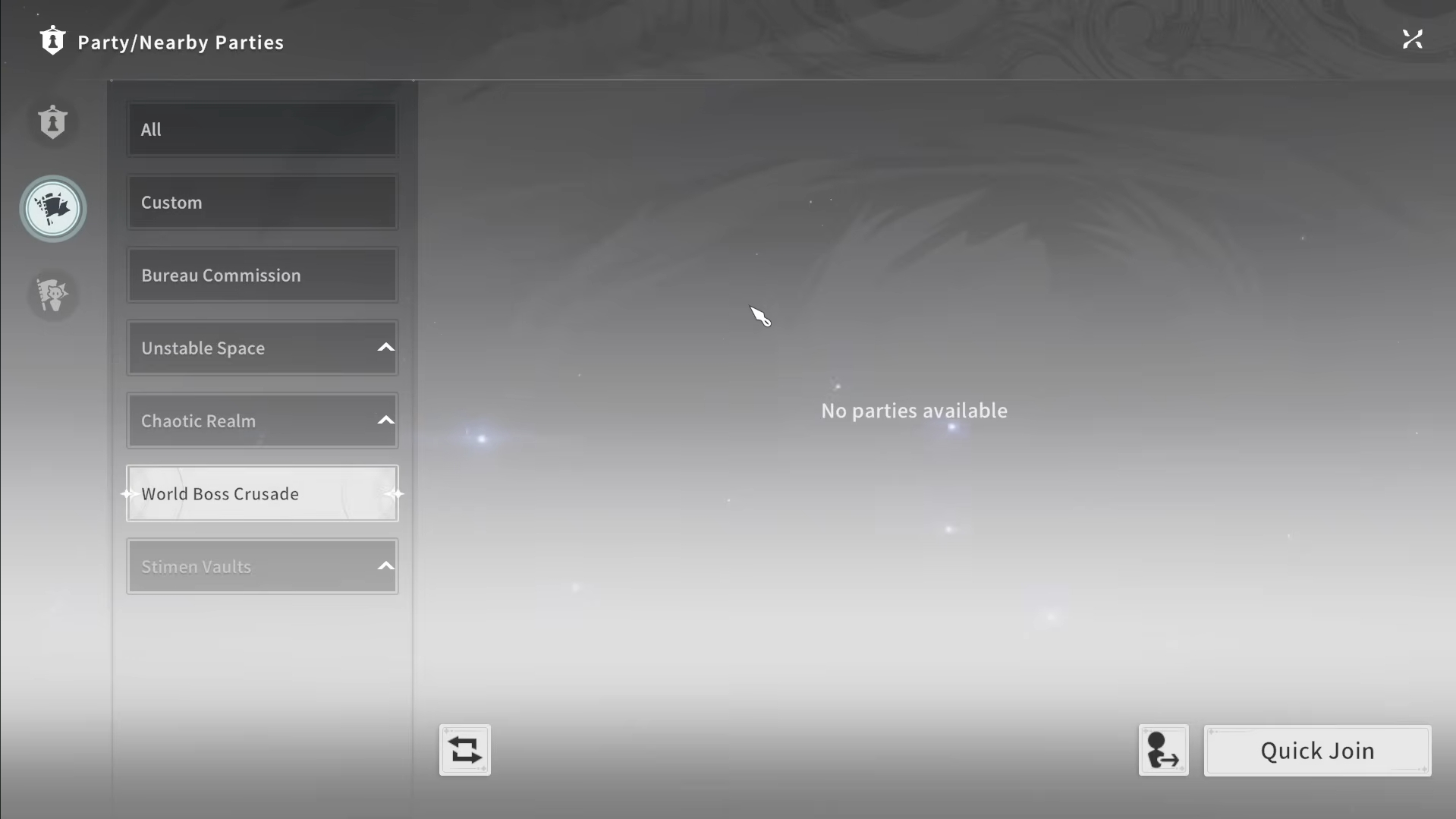 打开派对菜单并前往世界Boss远征选项卡。在这里,寻找描述了虚空残留物种植的派对。理想情况下,您希望在与他们一起冒险前往安德拉城废墟之前加入一个几乎满员的队伍。
