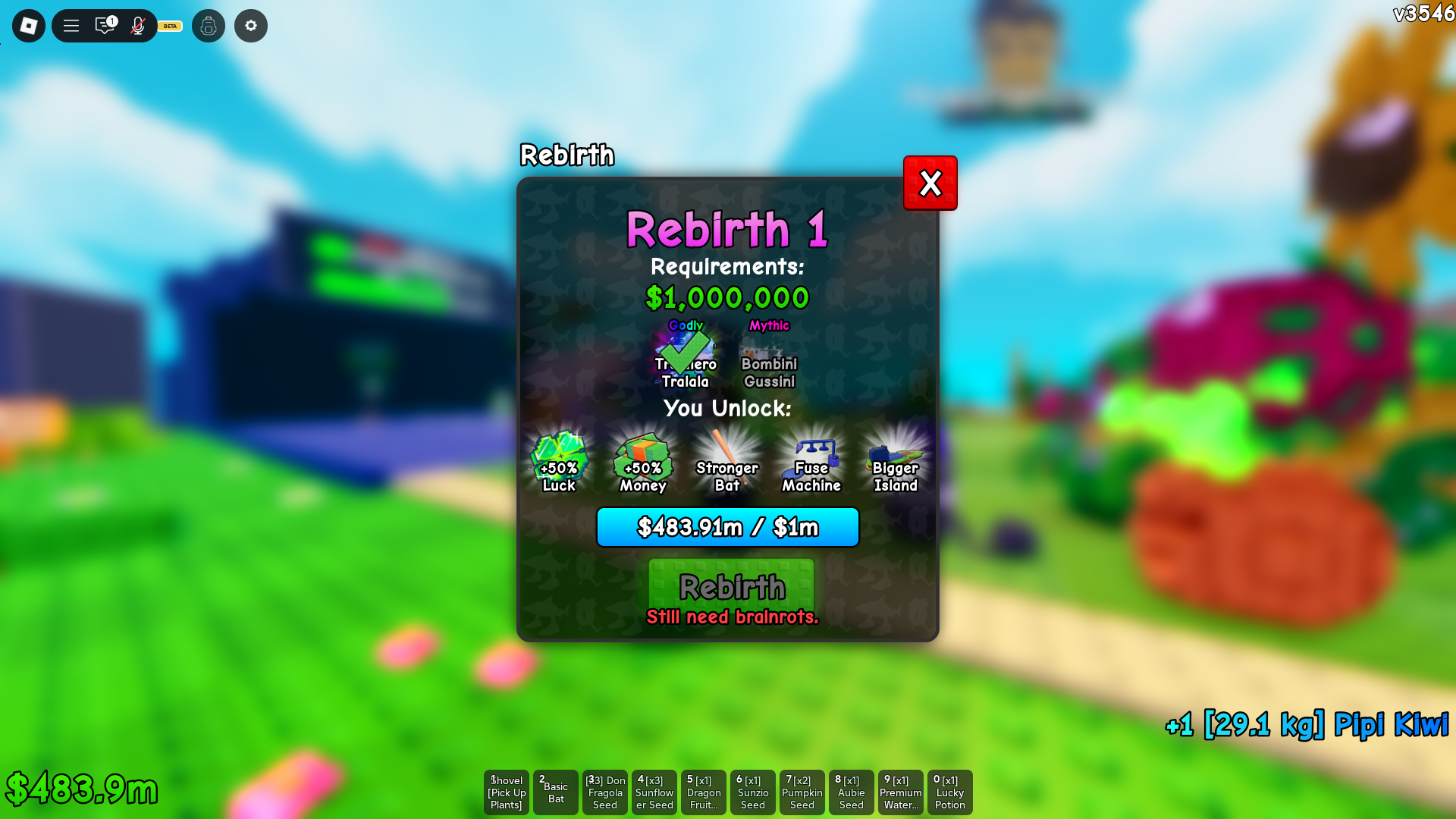 每次获得此机制时,重生都会为您带来额外的运气。每次获得重生时,您都可以获得额外 50% 的运气。请记住,您将失去所有赚来的钱和 Brainrot。除了运气之外,您还将获得更强的球棒、一些奖金现金和现金乘数。重生将要求你满足一些要求,随着你的进步,这些要求会变得更加难以获得。然而,额外的运气总是有好处的。