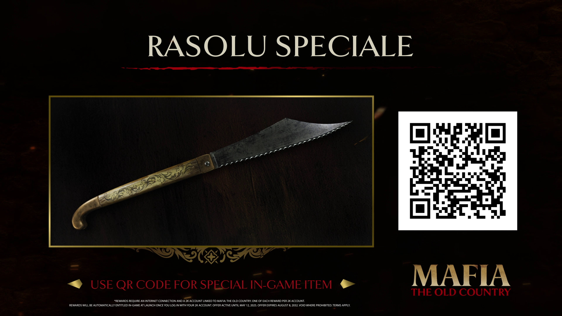 每个士兵都应该配备一把刀。您可以通过特殊方法在《黑手党旧国》中获得Rasolu Speciale刀。