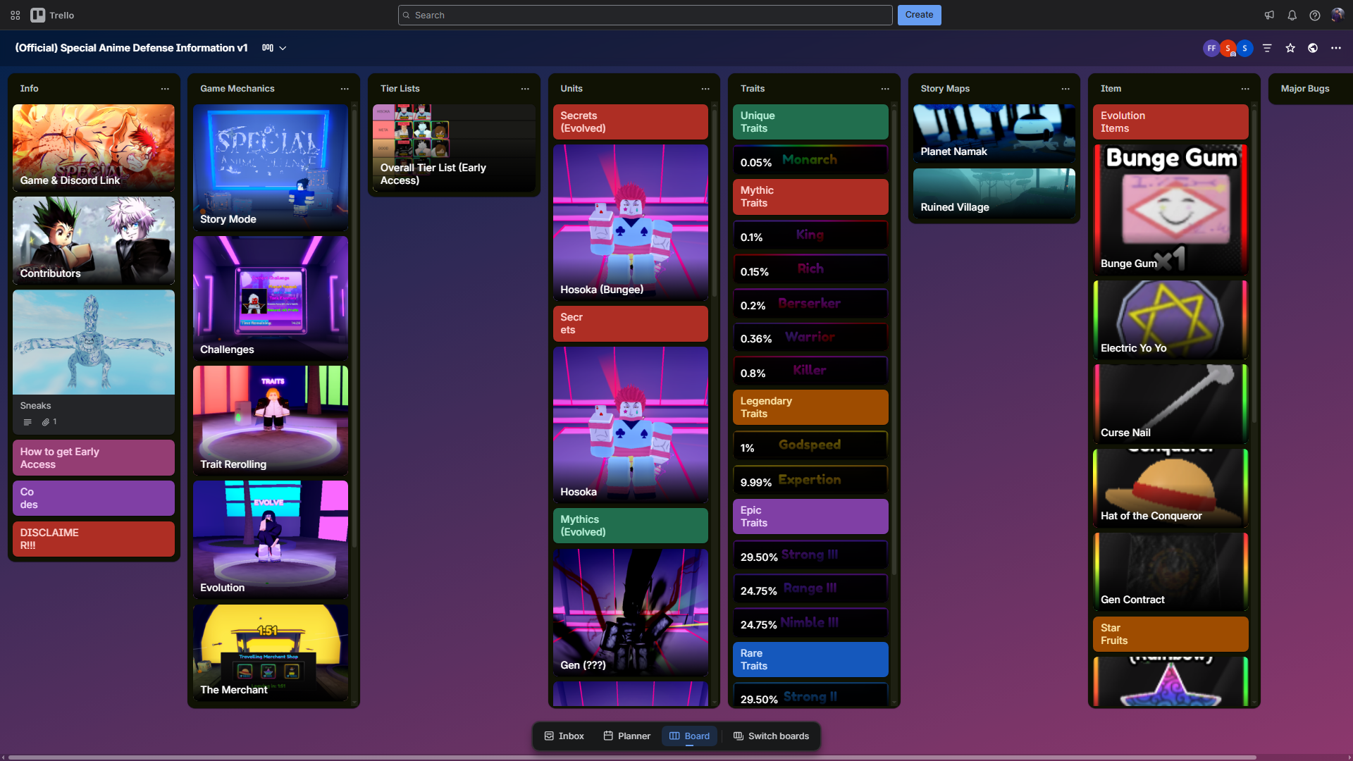 这动漫后裔 Trello被组织成简单的列,显示有关以下内容的所有信息: