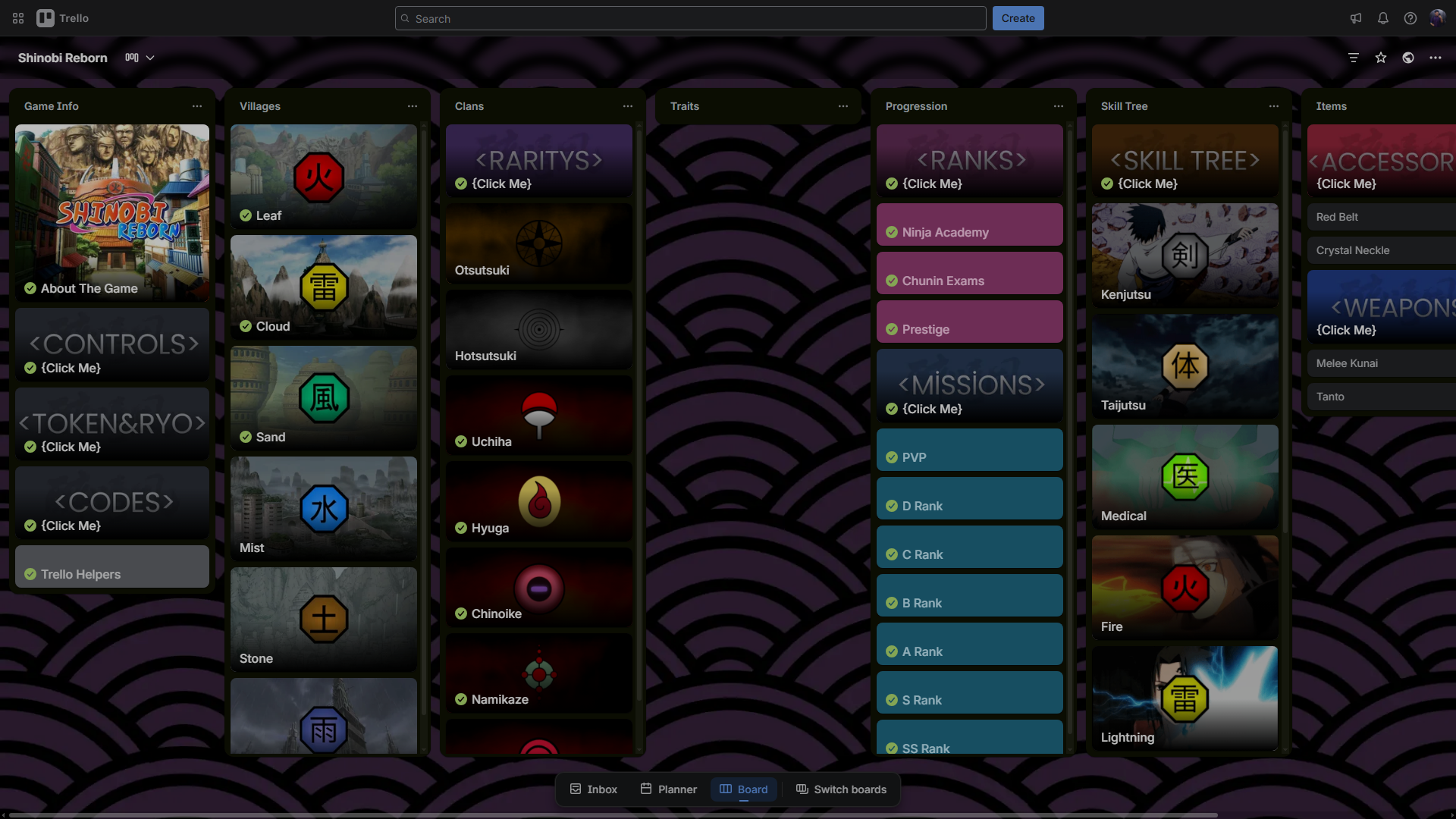 加入官方 Shinobi Reborn Discord 和 Trello,随时了解补丁说明、指南、部落和新游戏变更。