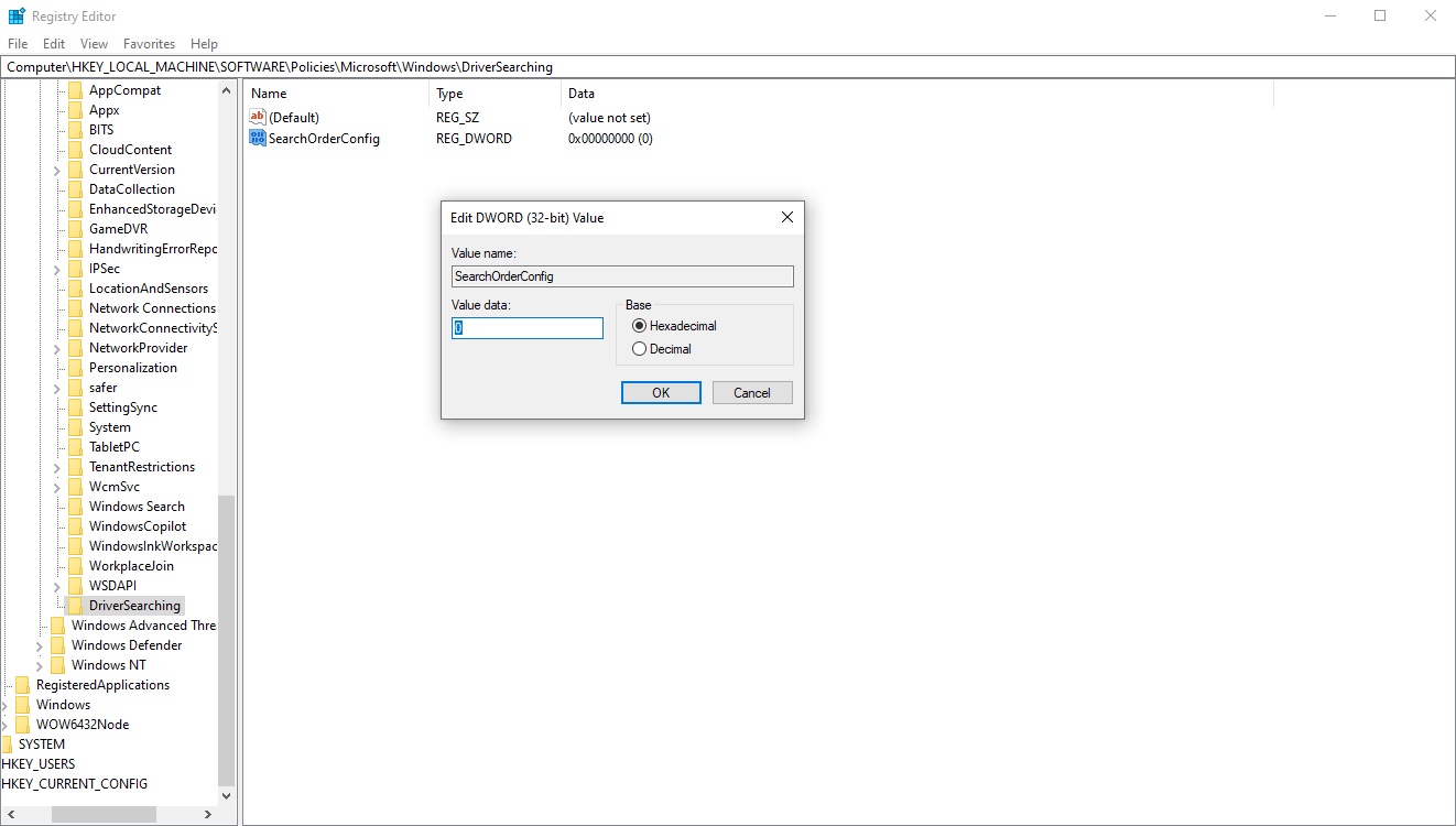 - 双击该 Dword 并将值设置为 0,然后单击“确定”。