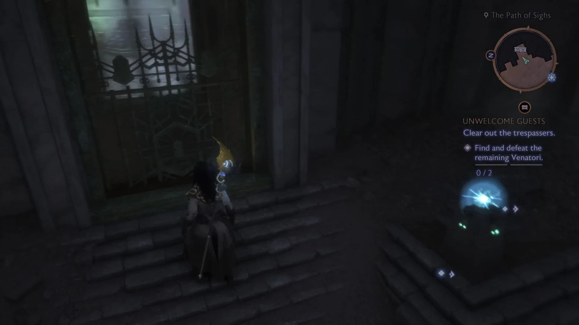 一旦你将所有五块分散的骨头放回棺材中,再次与棺材互动就会给你小精灵。将小精灵带到有四个紫色火把的房间,打开门并抓住后面的宝藏。完成紫色火把谜题的奖励包括艾姆里奇的研究员长袍,塔什的玉聪明, 和纪念森。