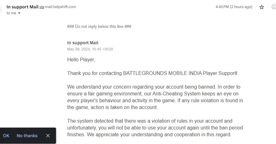 继续检查您的电子邮件和游戏中的通知,以了解有关您上诉的任何信息。 BGMI支持团队一定会通过他们的决定与您联系。