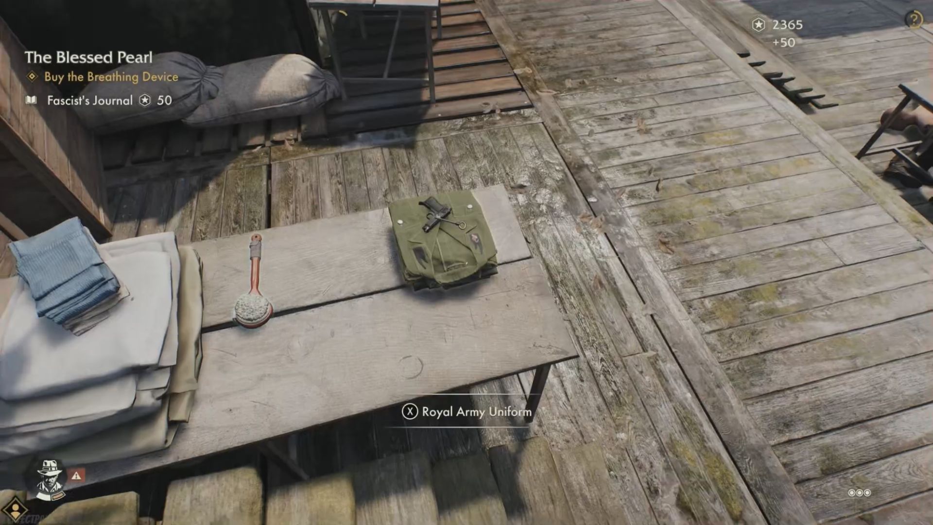 首先,您不能简单地穿着平常的服装进入该区域。这个地方有法西斯士兵把守,所以你需要先穿得像他们一样。就在建筑物外面,前往最左端的楼梯,找到皇家陆军制服。一旦你装备了这个,你就可以回到找到谜题的绿色帐篷。