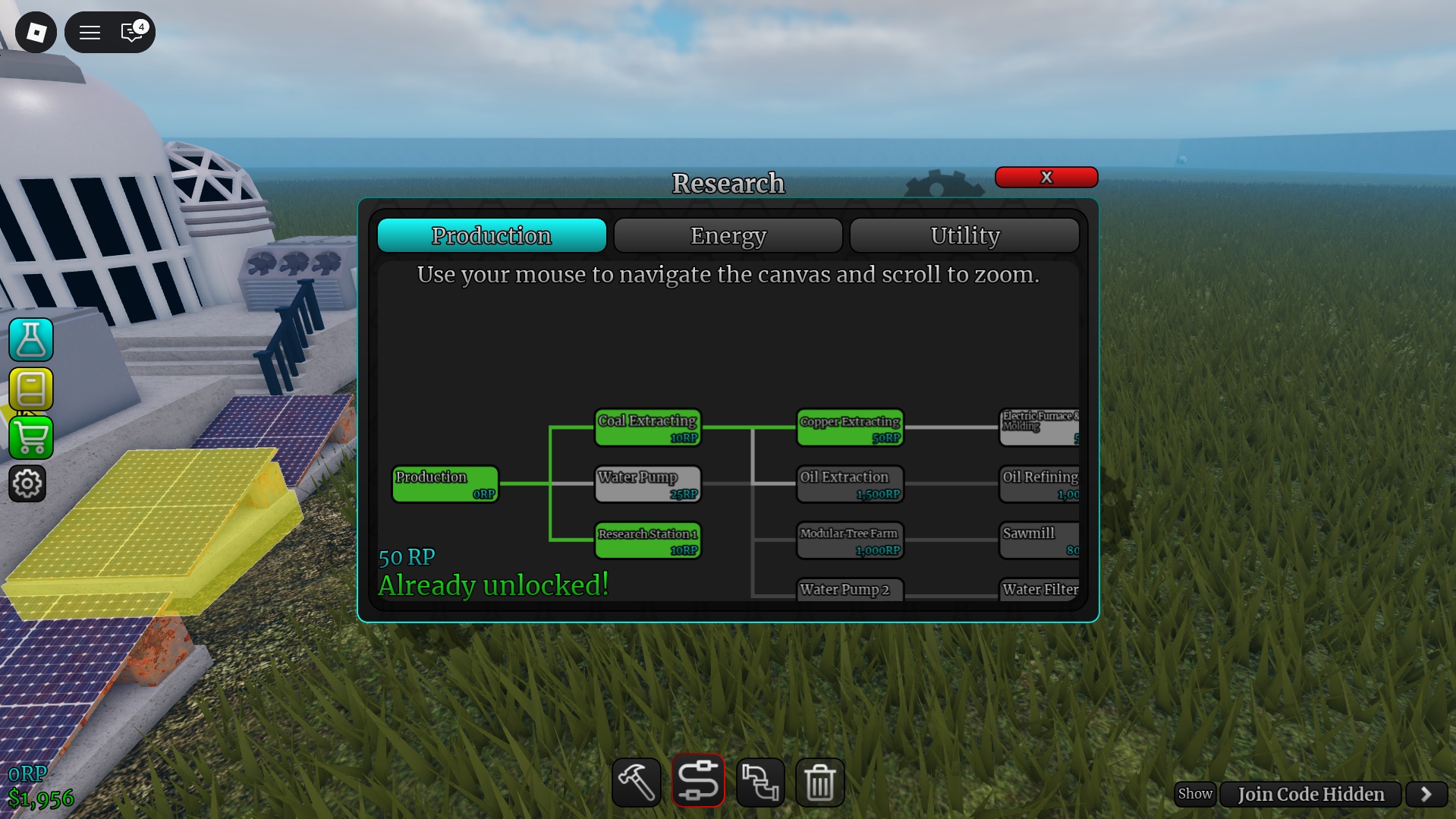 您将必须花费研究点来解锁更好的结构或为您的工厂研究优质零件。然而,研究点是有限的。您可以通过从放置菜单中构建研究站来获得更多这些。您可以通过单击屏幕左侧的蓝色烧杯按钮来打开“研究”菜单。您还可以查看节点中解锁下一个研究项目所需的研究点。