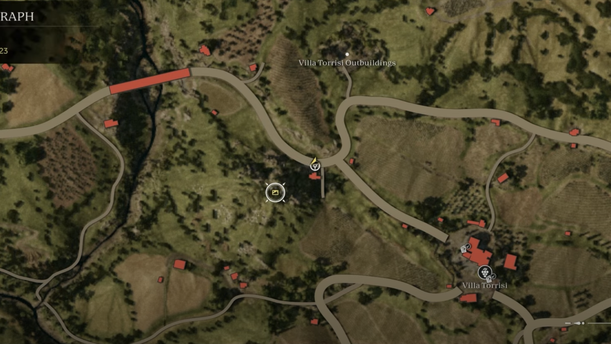 这是一个更容易找到的位置,位于Collezolfo快速旅行点附近的主要道路上。您可以从地图上的路点点击桥梁的照片。
